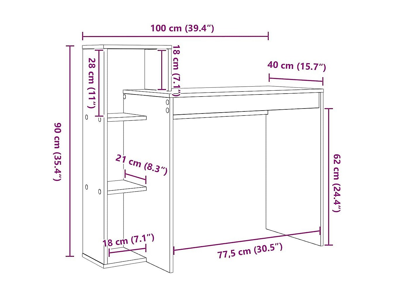 Escritorio con estantes madera contrachapada negro 100x45x140cm