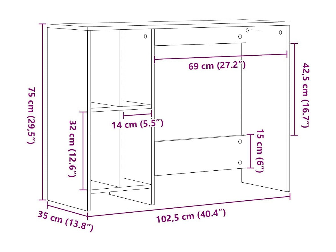 Escritorio Roble Negro 102.5 x 35 x 75 cm Madera contrachapada