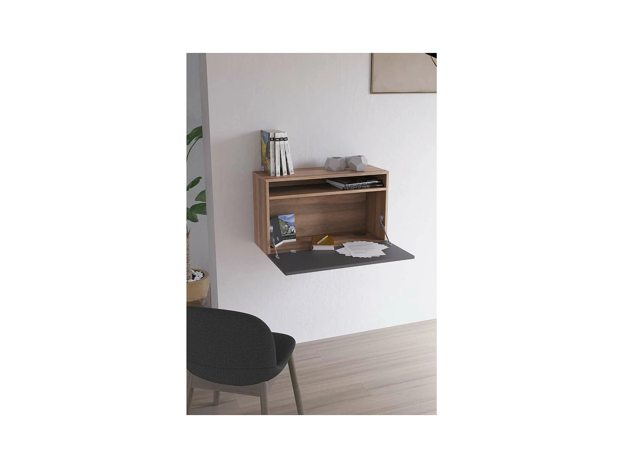 Mesa estudio para colgar Mod-Murillo acabado nogal/grafito, 15/46 x 80 x 42 cm (fondo x an