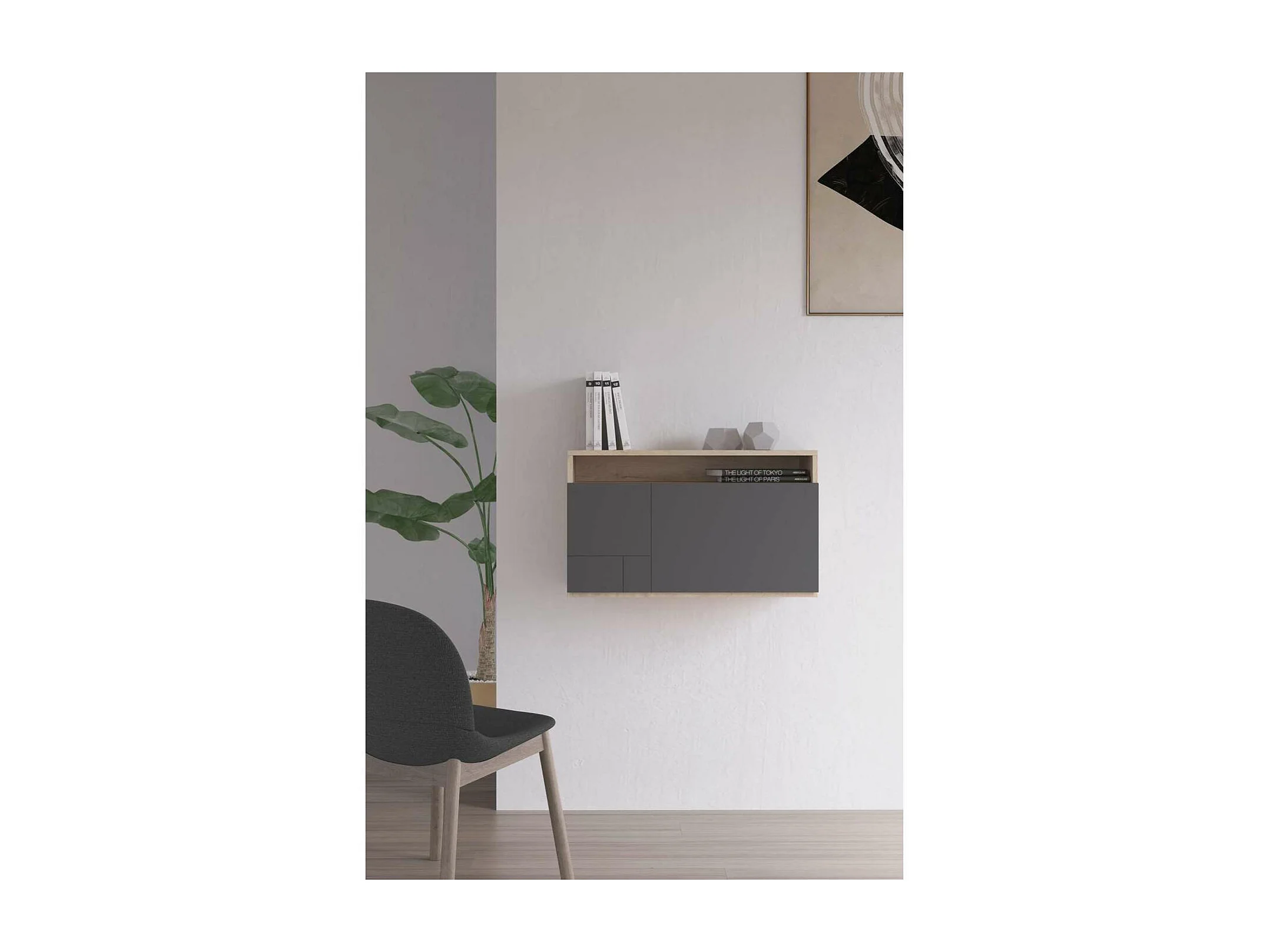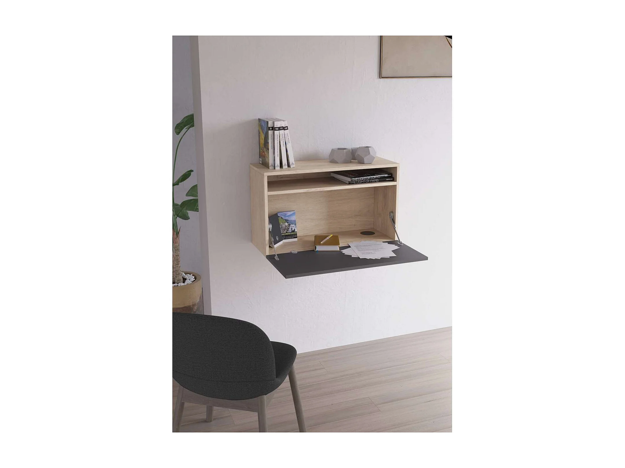 Escritorio suspendido modelo 628 color roble/grafito. 44x75x30 (alto x ancho x fondo)