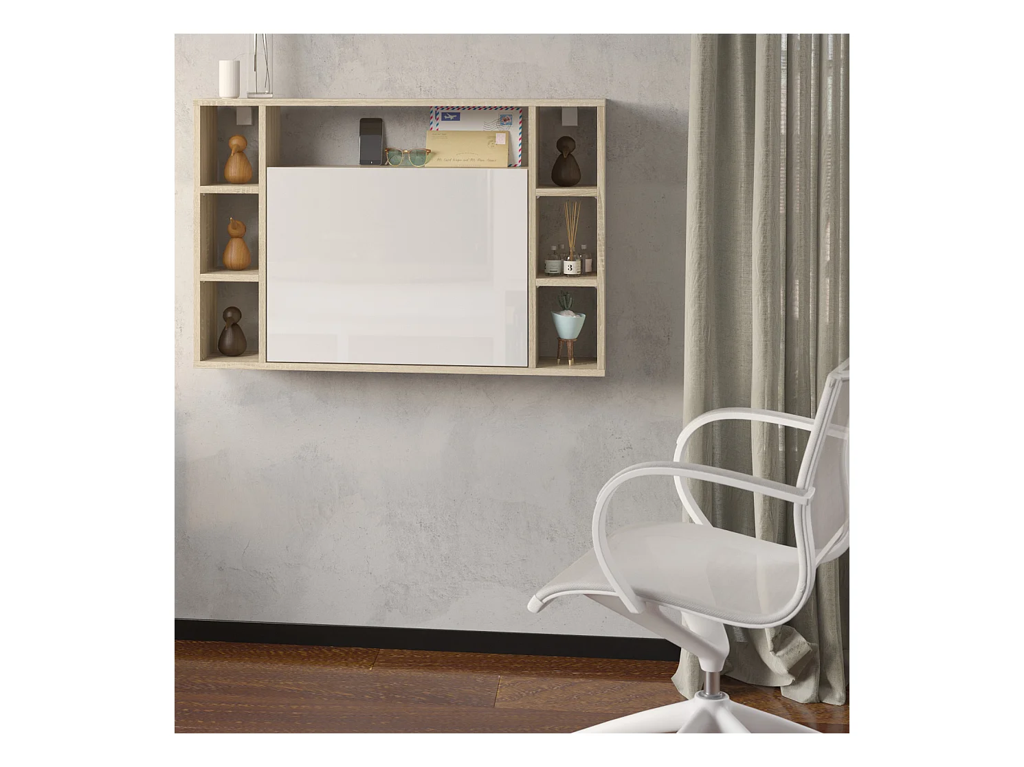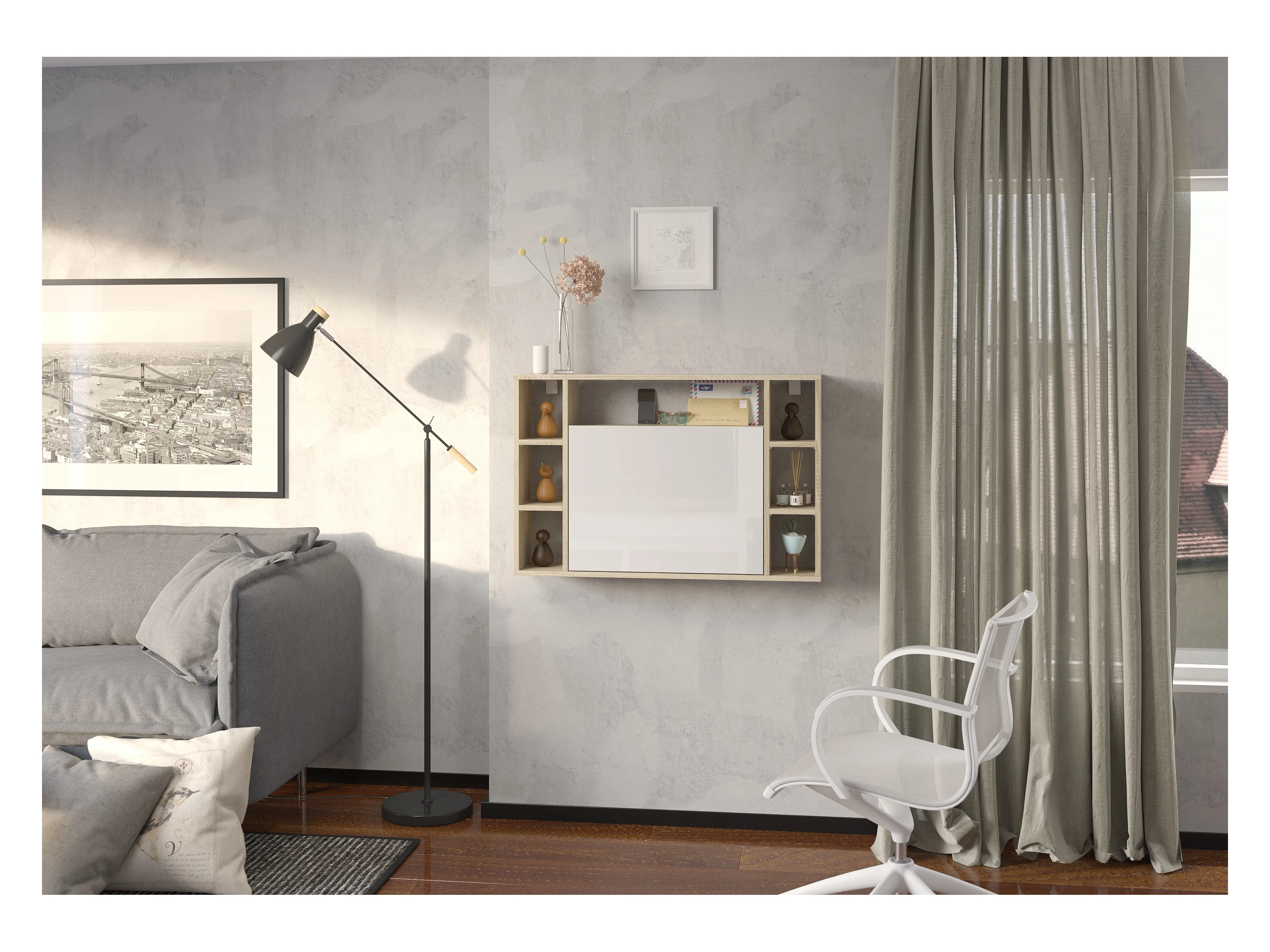 Escritorio suspendido MUSE roble sonoma / blanco brillante