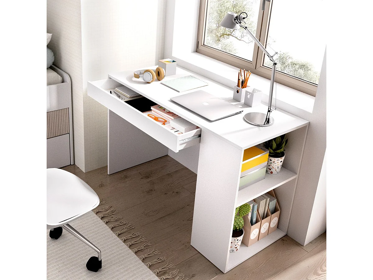 Escritorio Teo 2 compartimentos y cajón blanco 74,5x115x50 cm