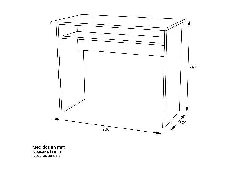 Escritorio Tierra color blanco con balda interior fija. 74 cm(alto)90 cm(ancho)50 cm(fondo