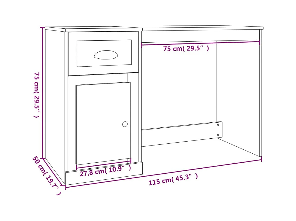 Escritorio y cajón madera contrachapada gris Sonoma 115x50x75cm