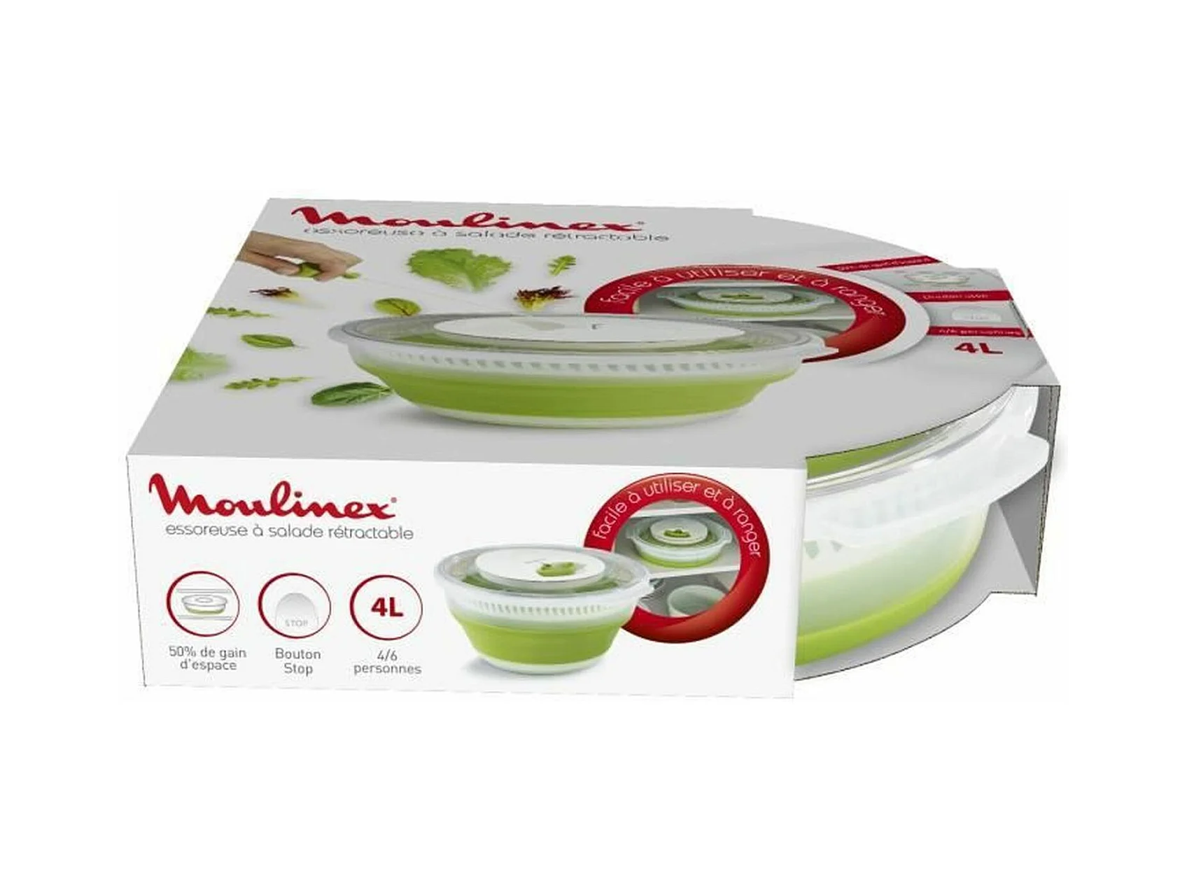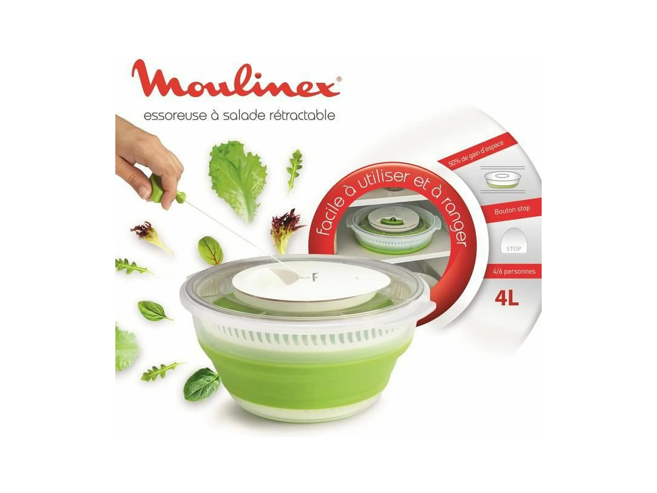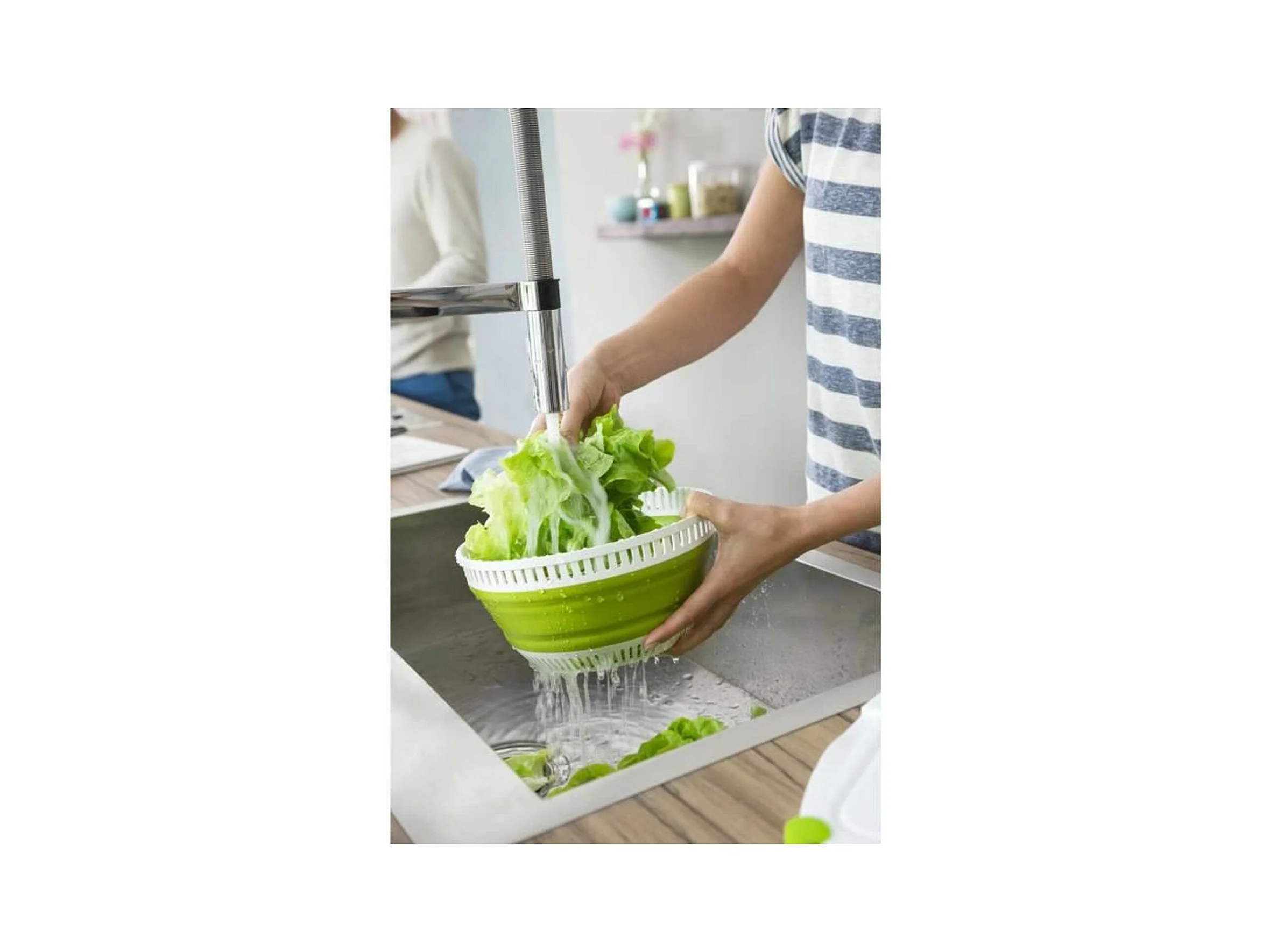 Escurridor de ensalada retráctil 4 L, antideslizante, tirador de cordón, botón de parada - Verde-blanco