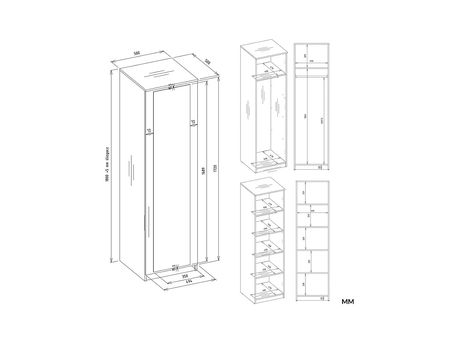 ESME - Armario sencillo con espejo para dormitorio - 50x50x180 - 1 puerta - Vestidor