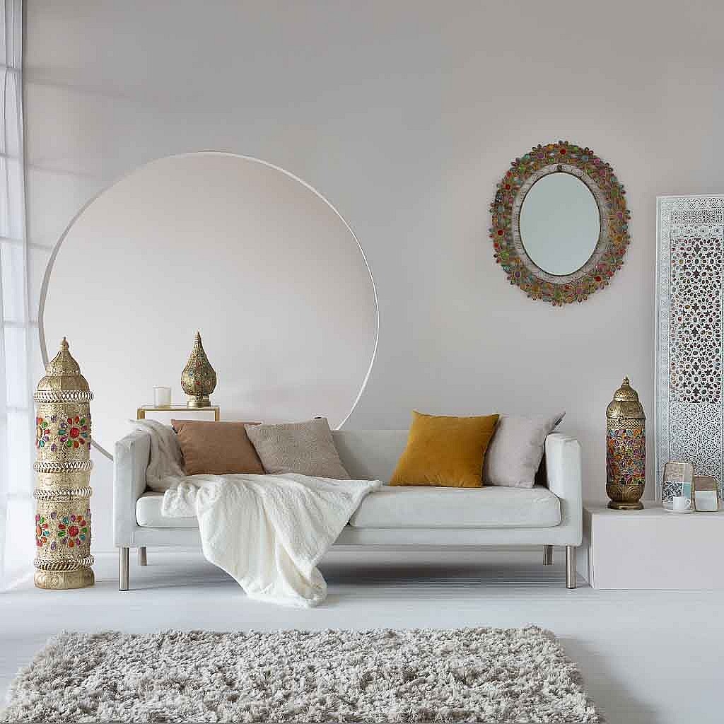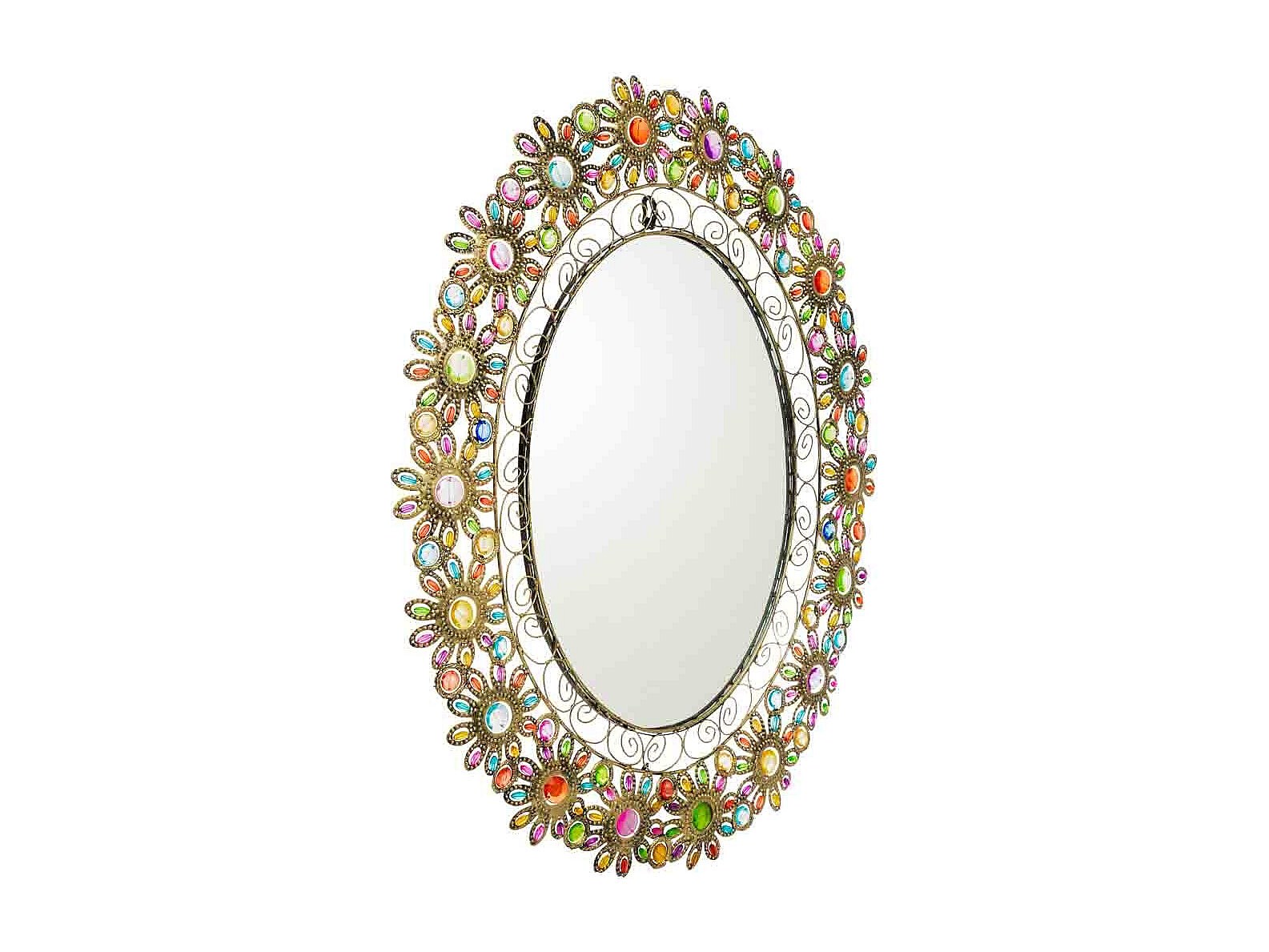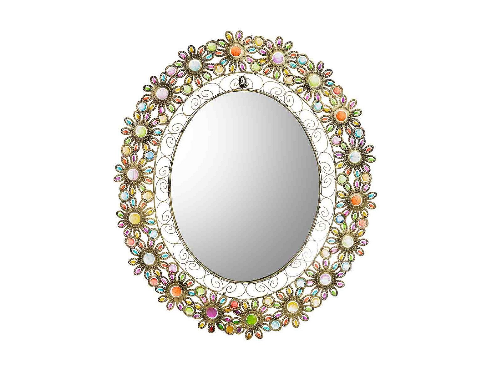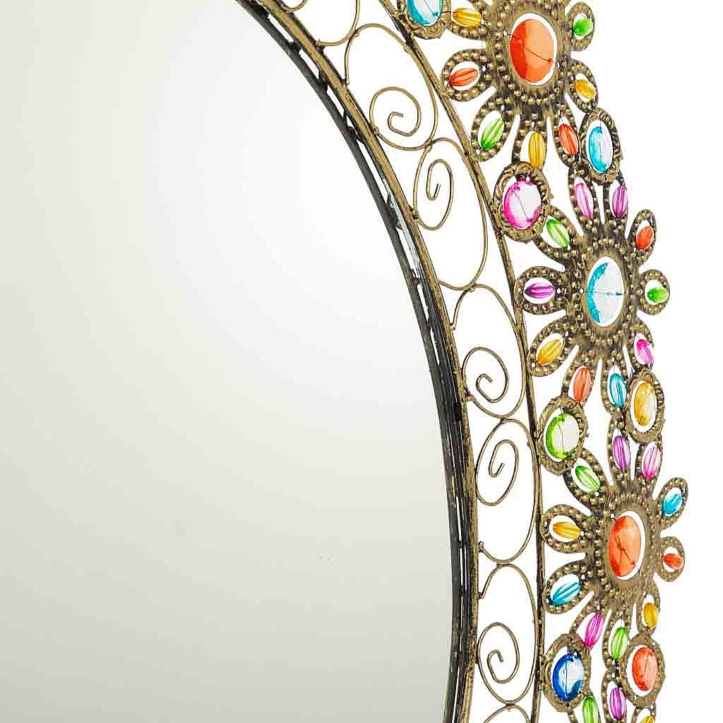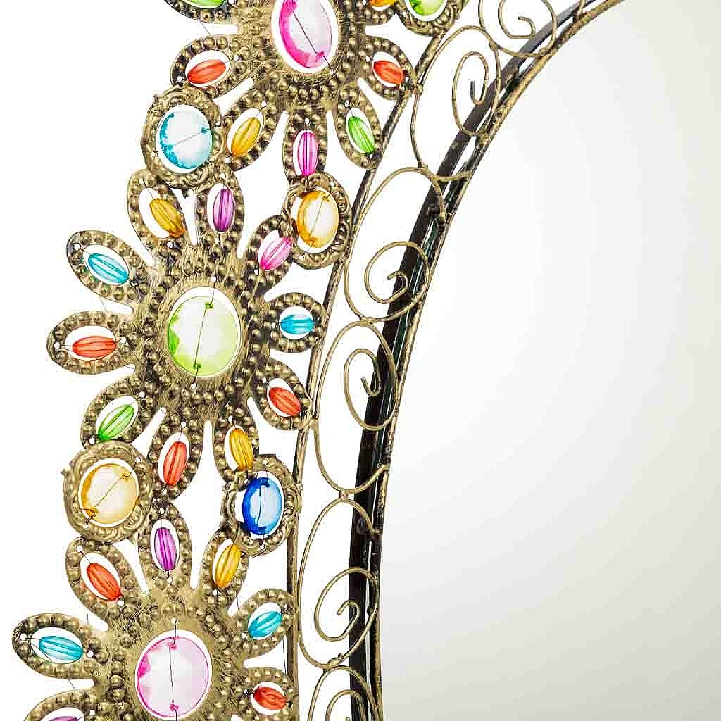 Espejo de madera de mango con mosaicos artesanales multicolores