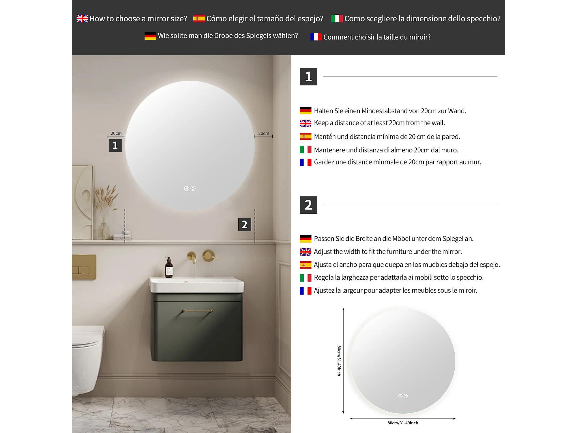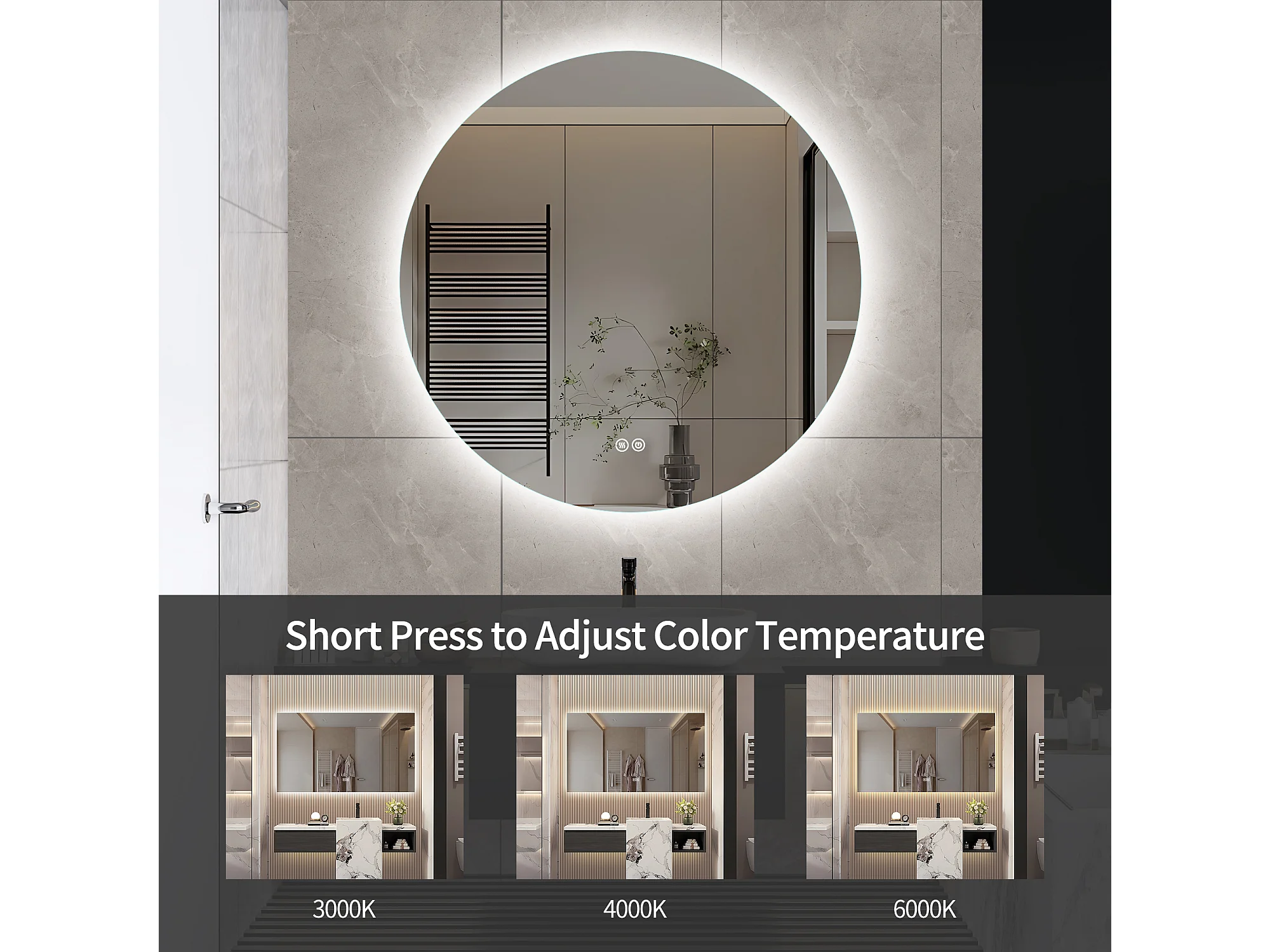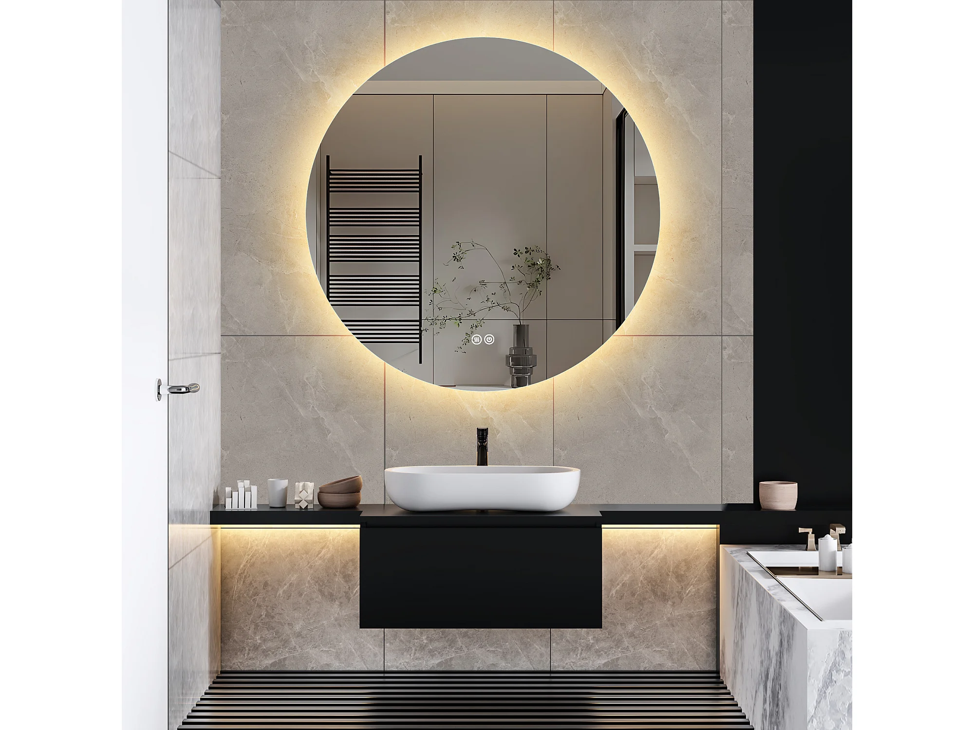 Espejo de baño con iluminación LED - 80 x 80 cm - Interruptor táctil - 3 colores de iluminación - Montaje en pared
