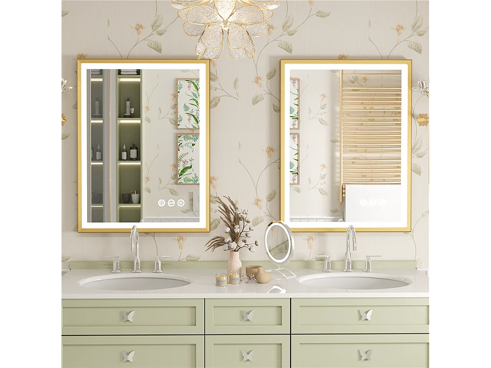 Espejo de baño iluminado LED antivaho con marco dorado 80x60x4cm