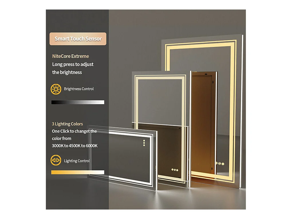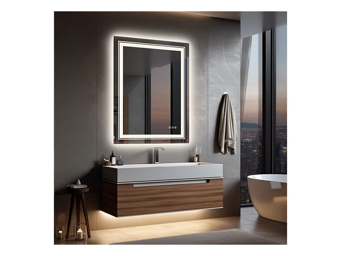 Espejo de baño LED rectangular con iluminación regulable en 3 colores 90x70cm