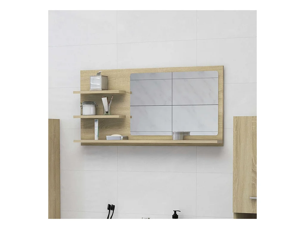 Espejo de baño madera contrachapada roble Sonoma 90x10,5x45 cm