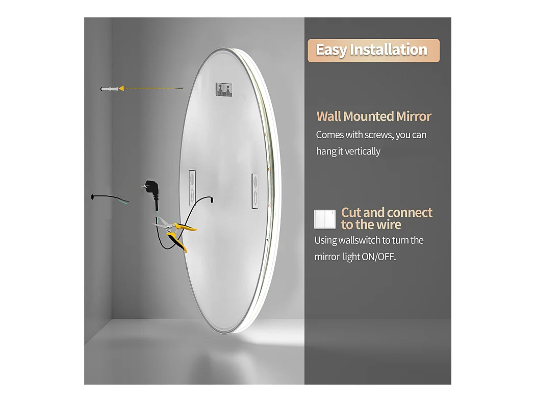 Espejo NETTLIFE con Iluminación Espejo de Baño Redondo LED Espejo de Baño 80cm Redondo IP44 Espejo de Baño con Táctil