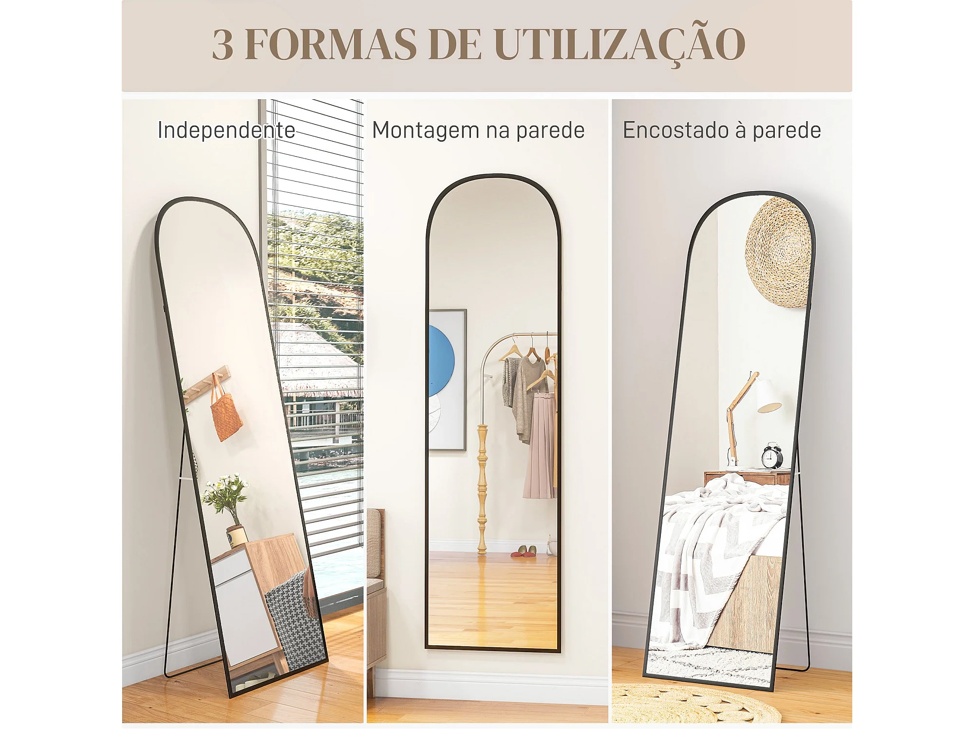Espejo de pie, marco de aluminio negro, diseño versátil y elegante (50x2x161,5cm)