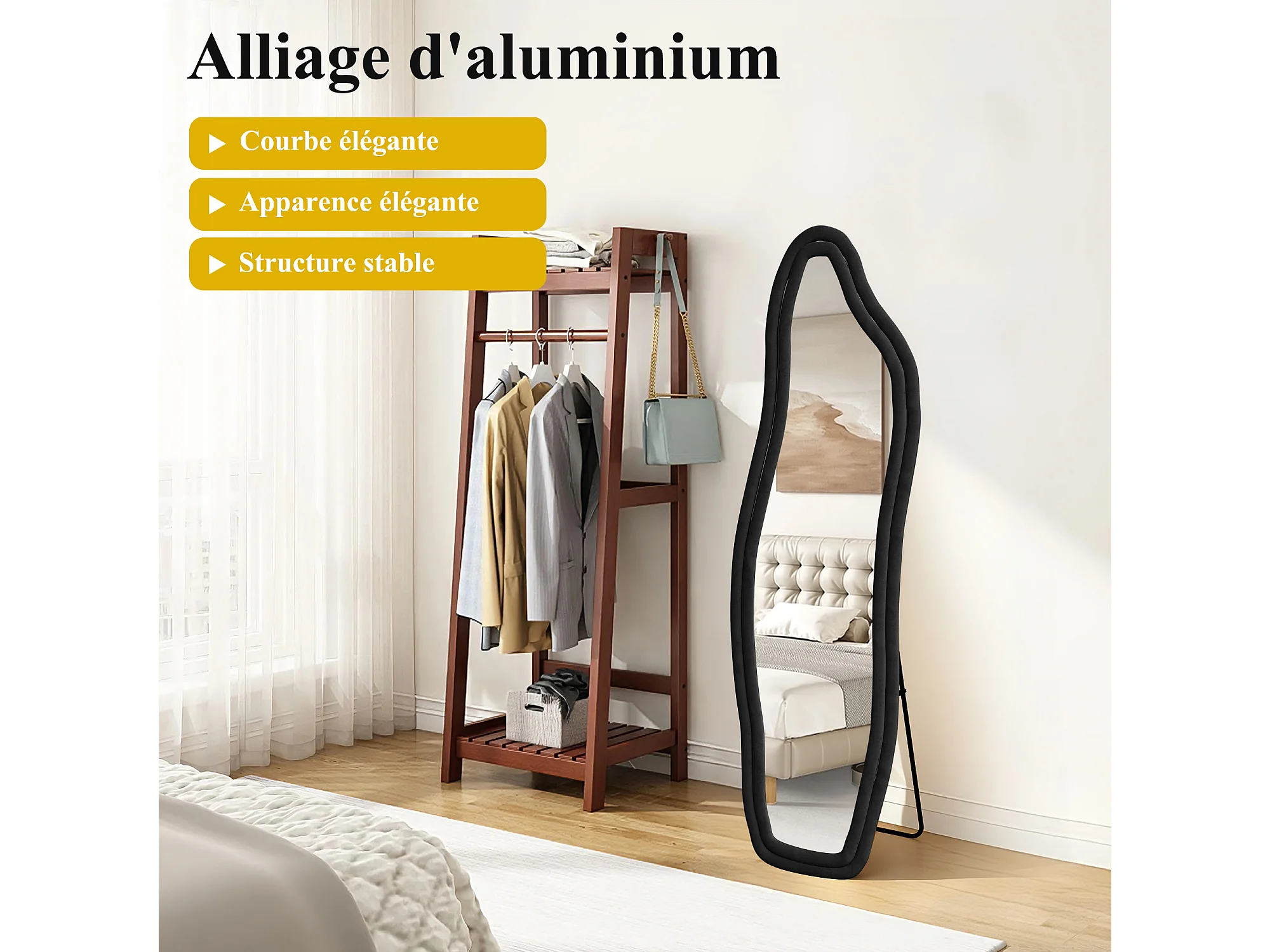 Espejo de cuerpo entero, de pie, con diseño ondulado irregular, con soporte ondulado, 50 x 160 cm, negro