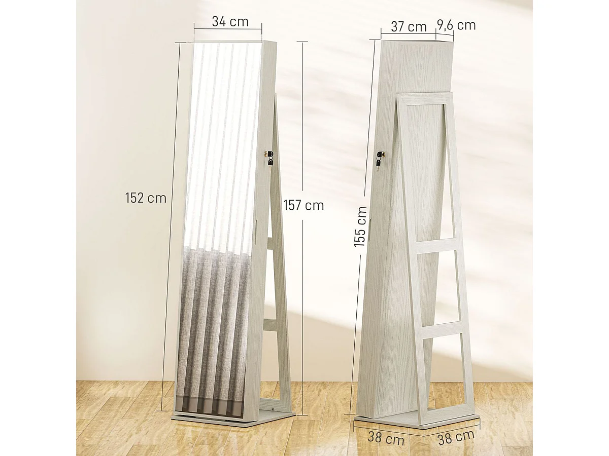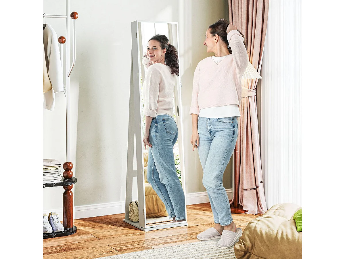 Espejo de cuerpo entero Eloria Homcom instalación convertible blanco 175x38x38 cm
