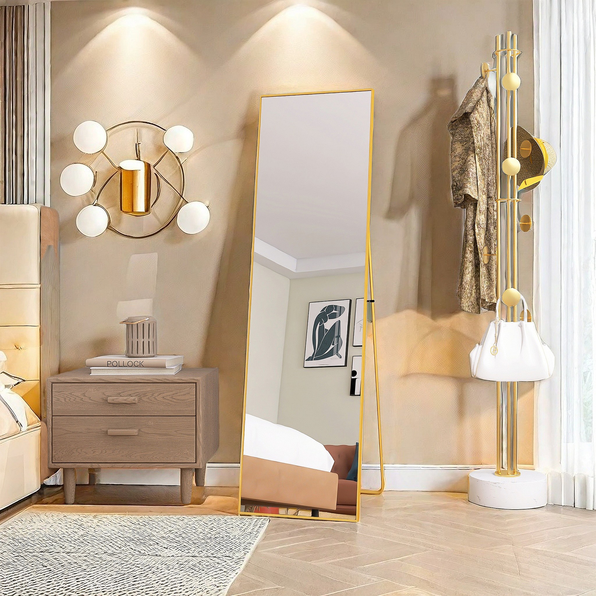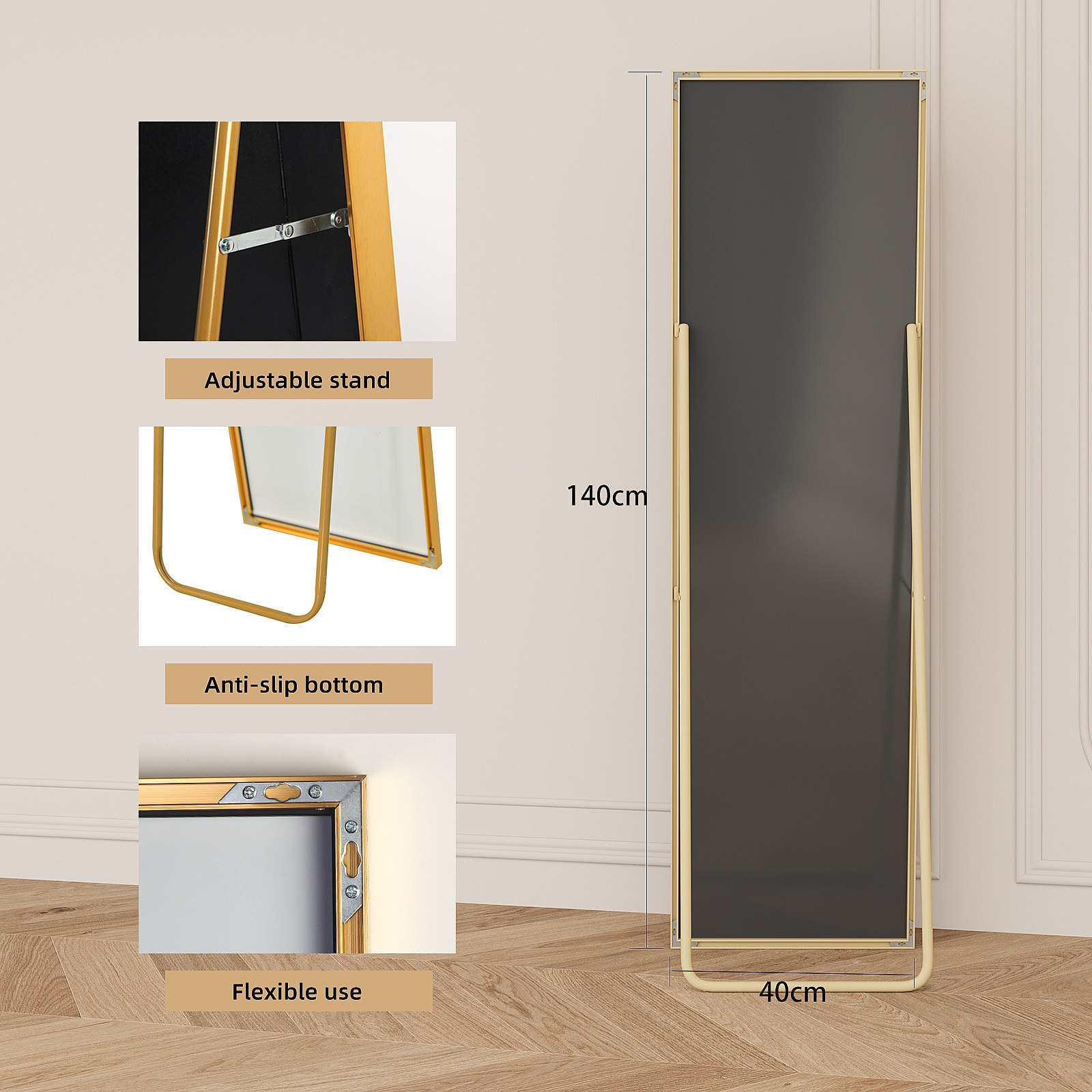 Espejo de pie rectangular con marco de metal HD Espejo de pie grande para sala de estar, dormitorio y vestidor Espejo dorado 165x60cm