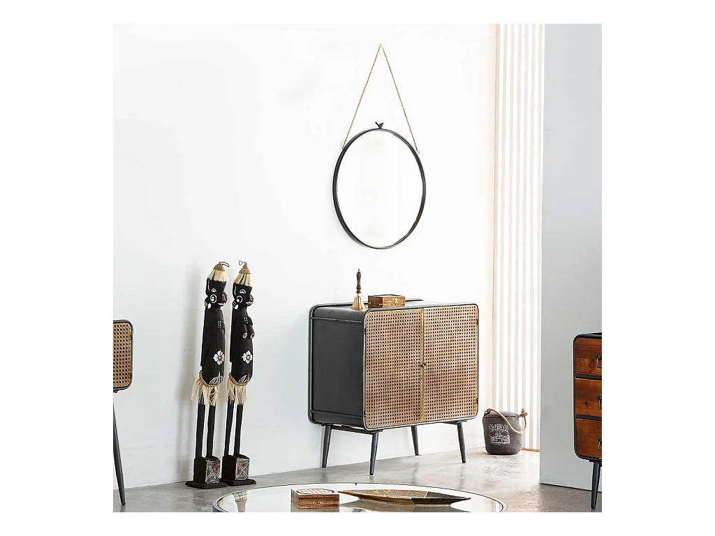 Espejo de pared redondo TRAPANI de metal negro – Ø 60 cm