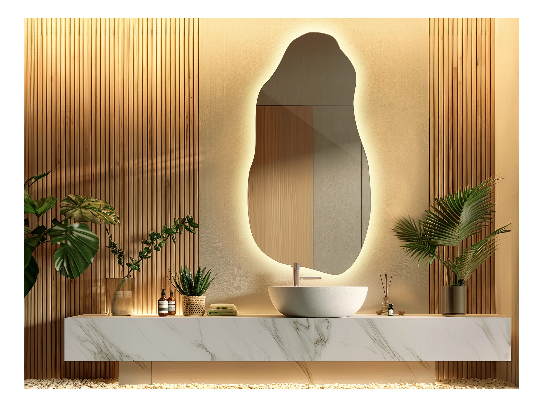 Espejo de pared LED premium único y original para maquillaje y rostro 45 cm x 90 cm - luz cálida