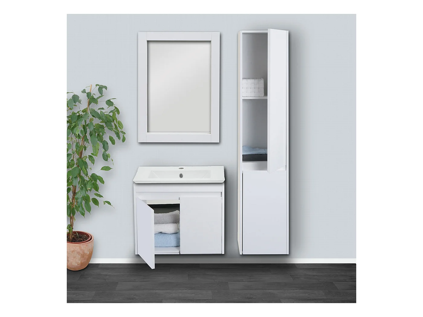 Espejito Dmancon, Espejo de baño, 100% Made in Italy, cm 60x2h60, blanco brillante