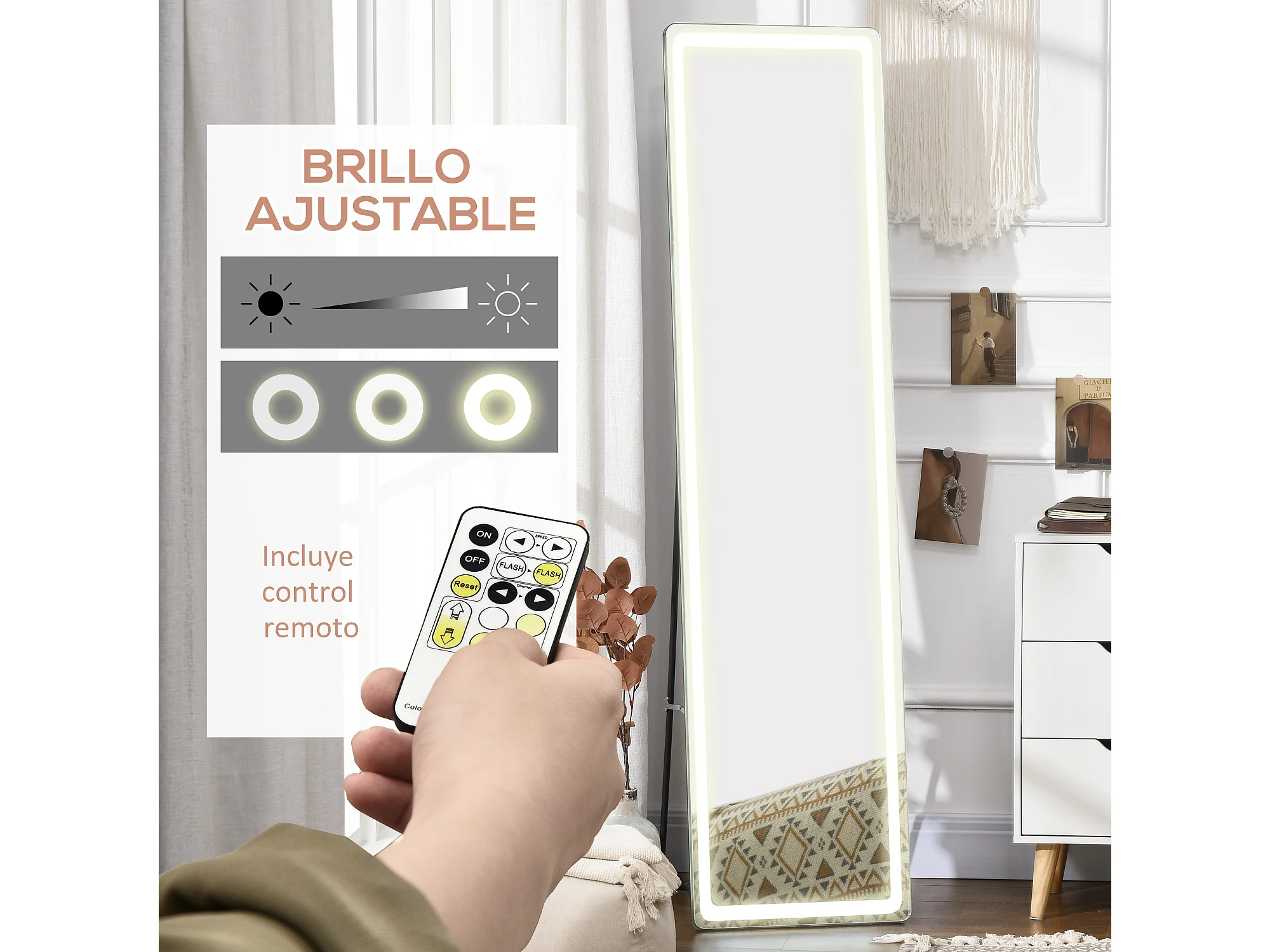 Espejo de pie Atlantis Homcom luz LED ajustable plateado 150x40 cm