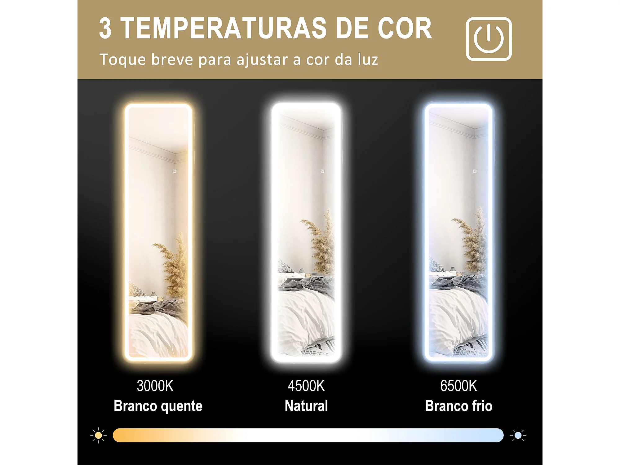 Espejo de pie Atlantis Homcom luz LED ajustable negro 150x40 cm