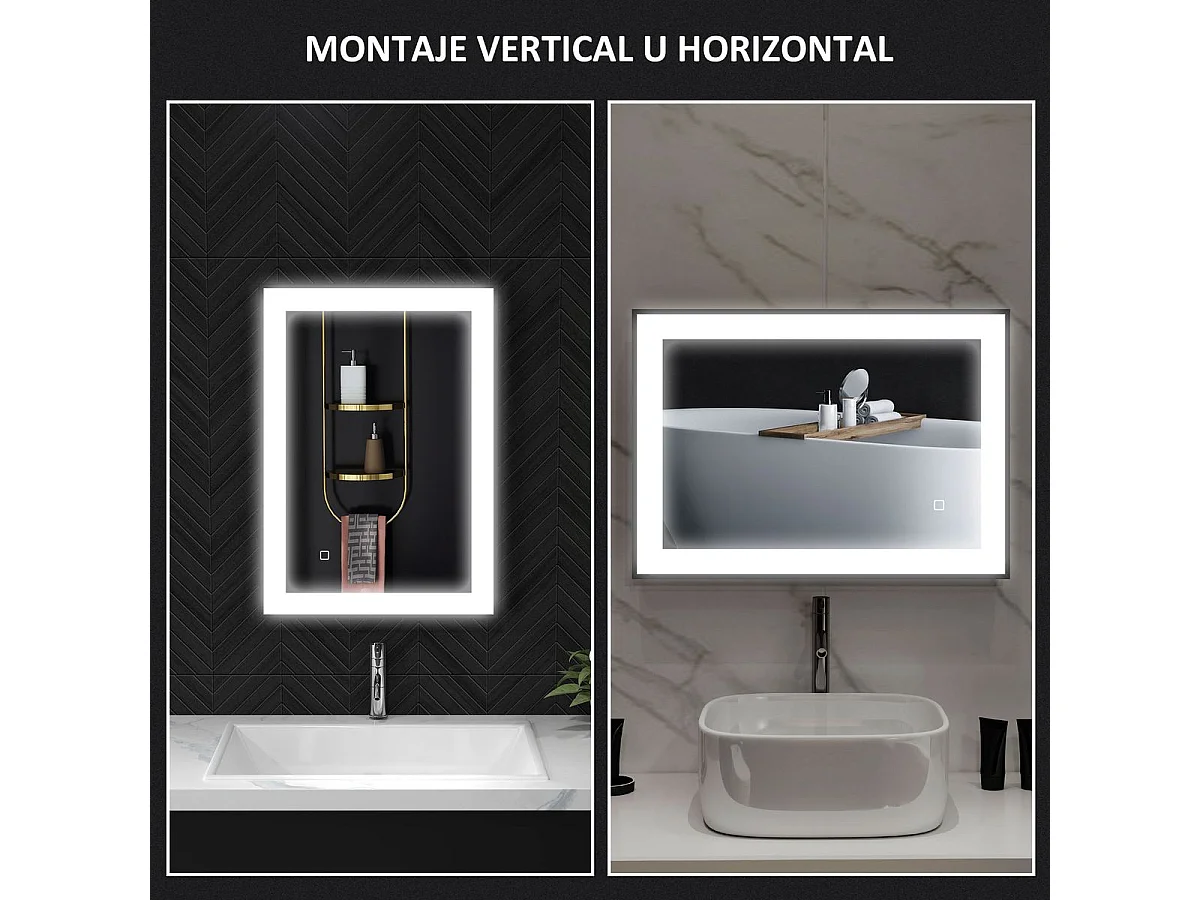 Espejo Honda Homcom antivaho con luz LED negro 50x70x3 cm