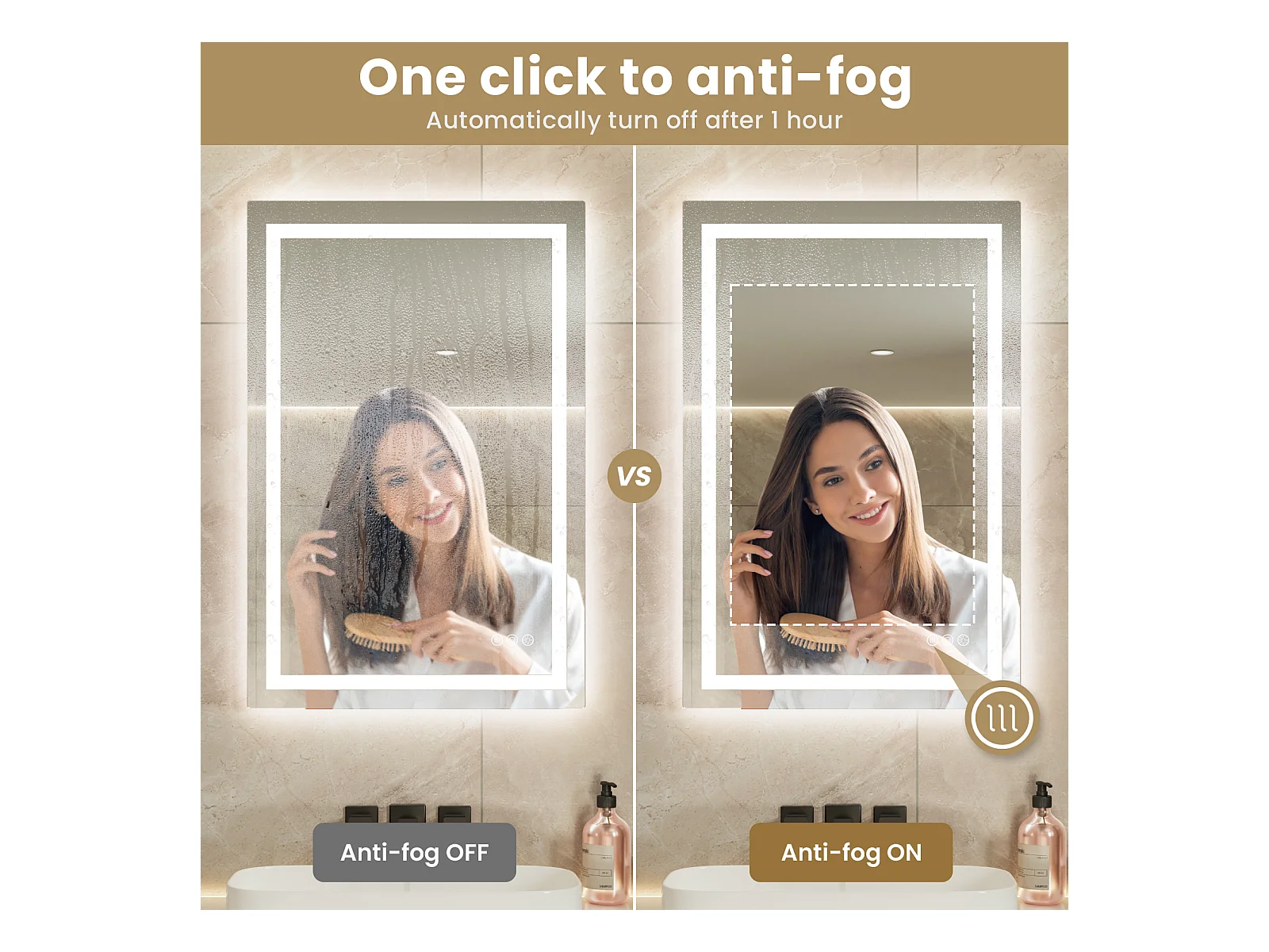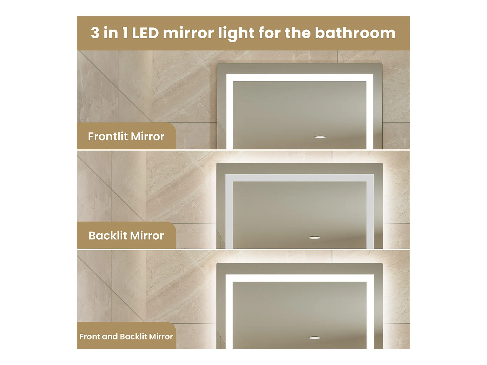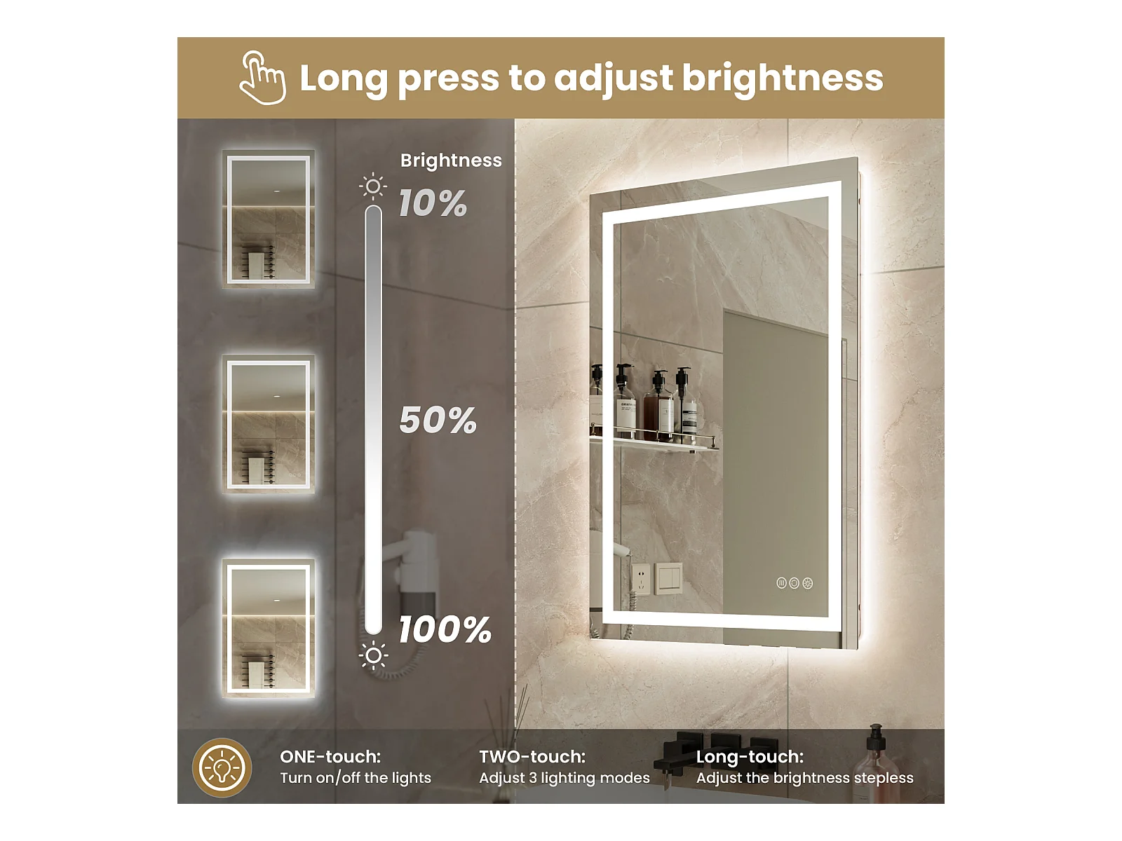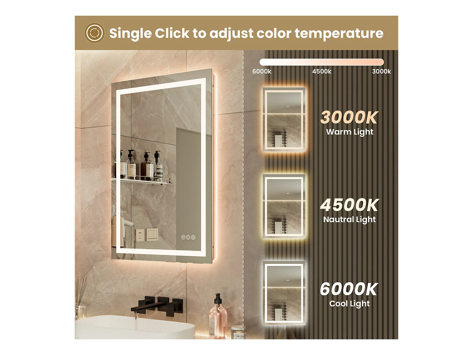 Espejo Iluminado LED Lupa + Tricolor + Antivaho 90x60cm Baño Regulable, Memoria, Táctil