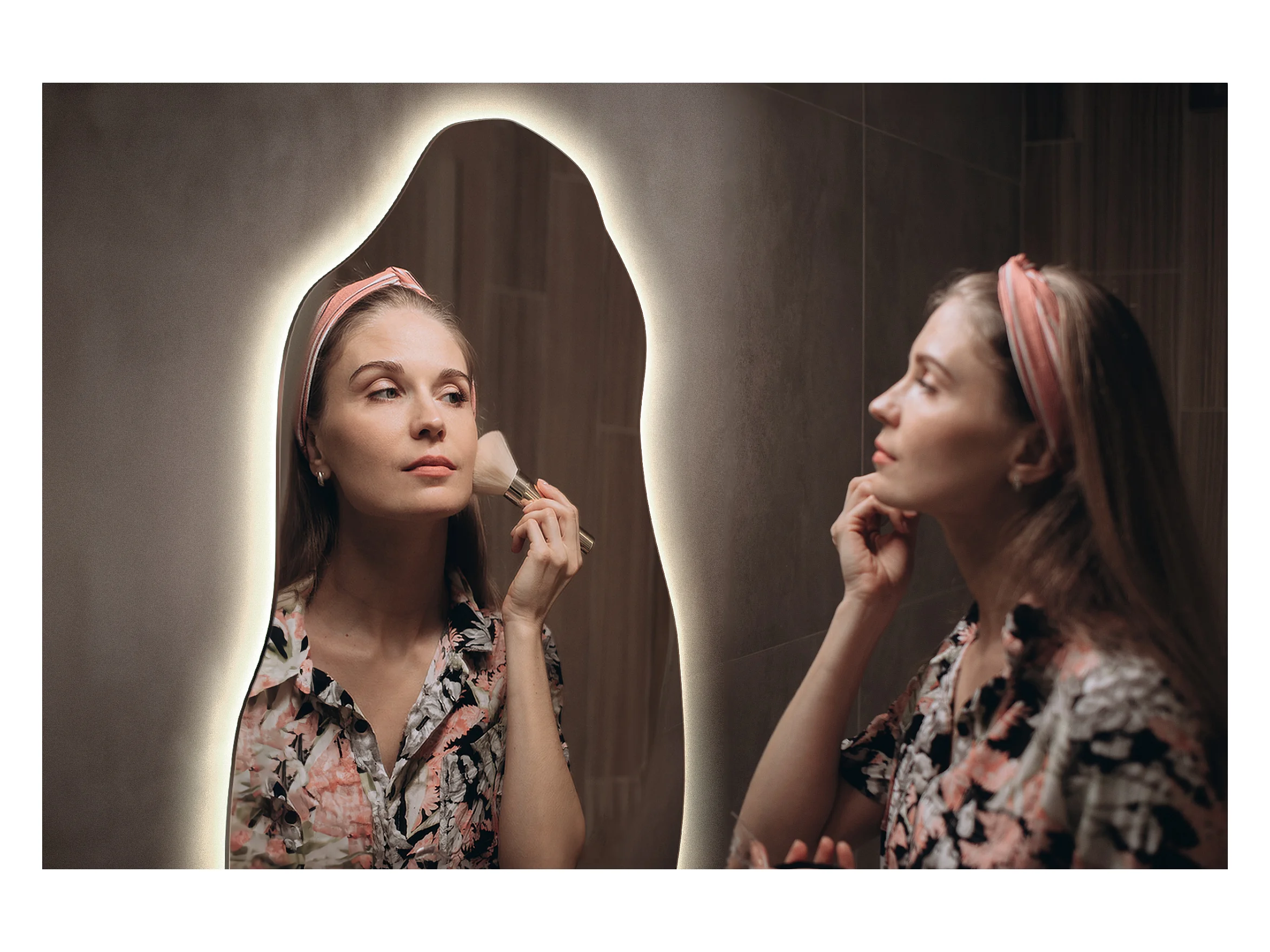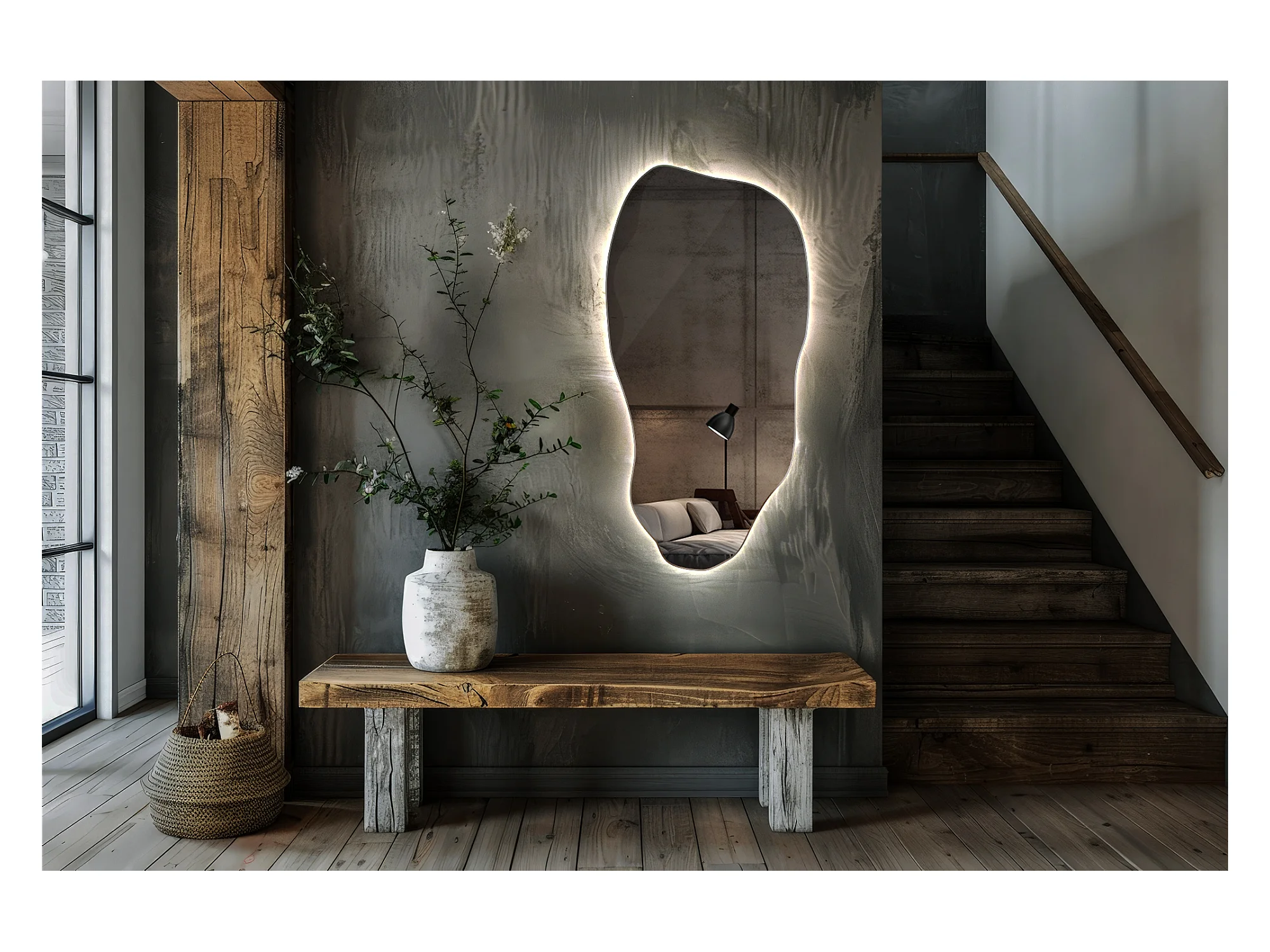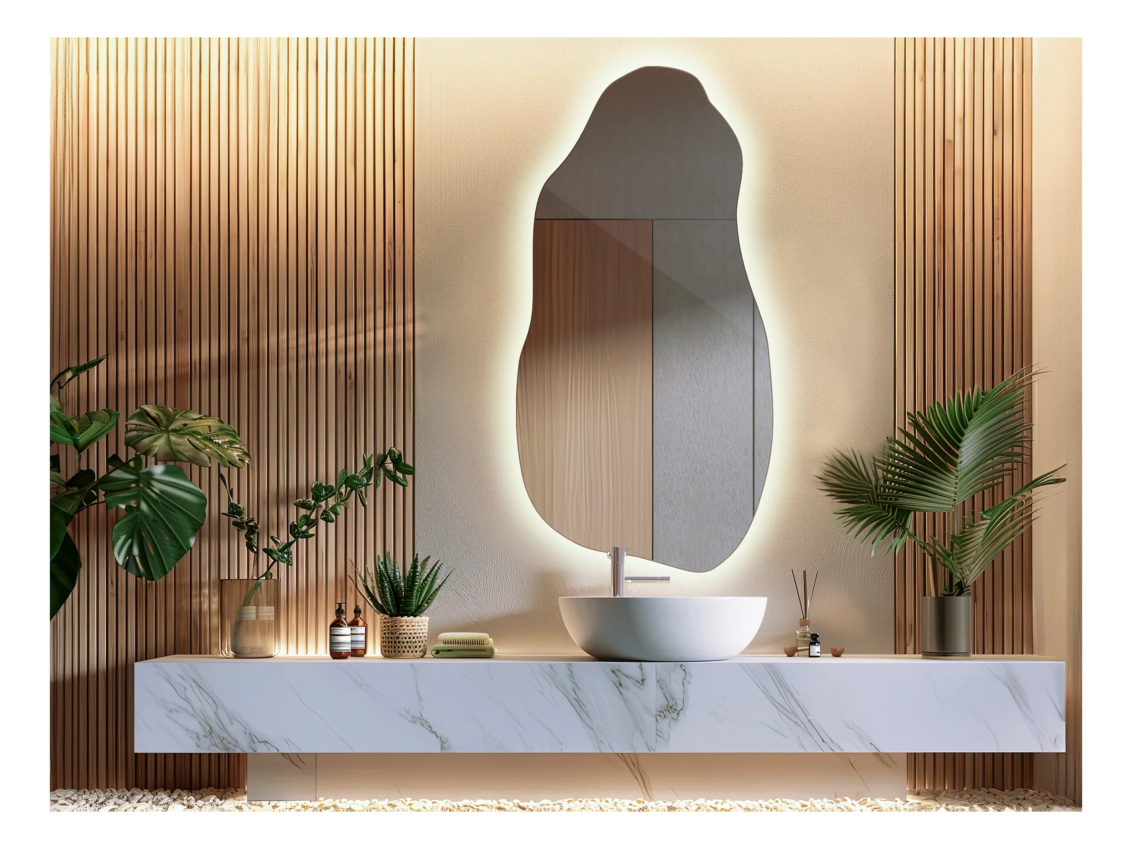 Espejo LED orgánico con forma de diseño para cualquier interior y estilo 50 cm x 100 cm - luz neutra