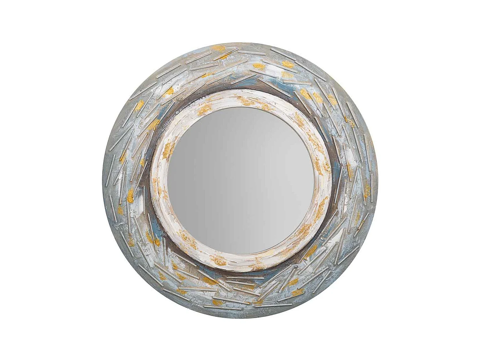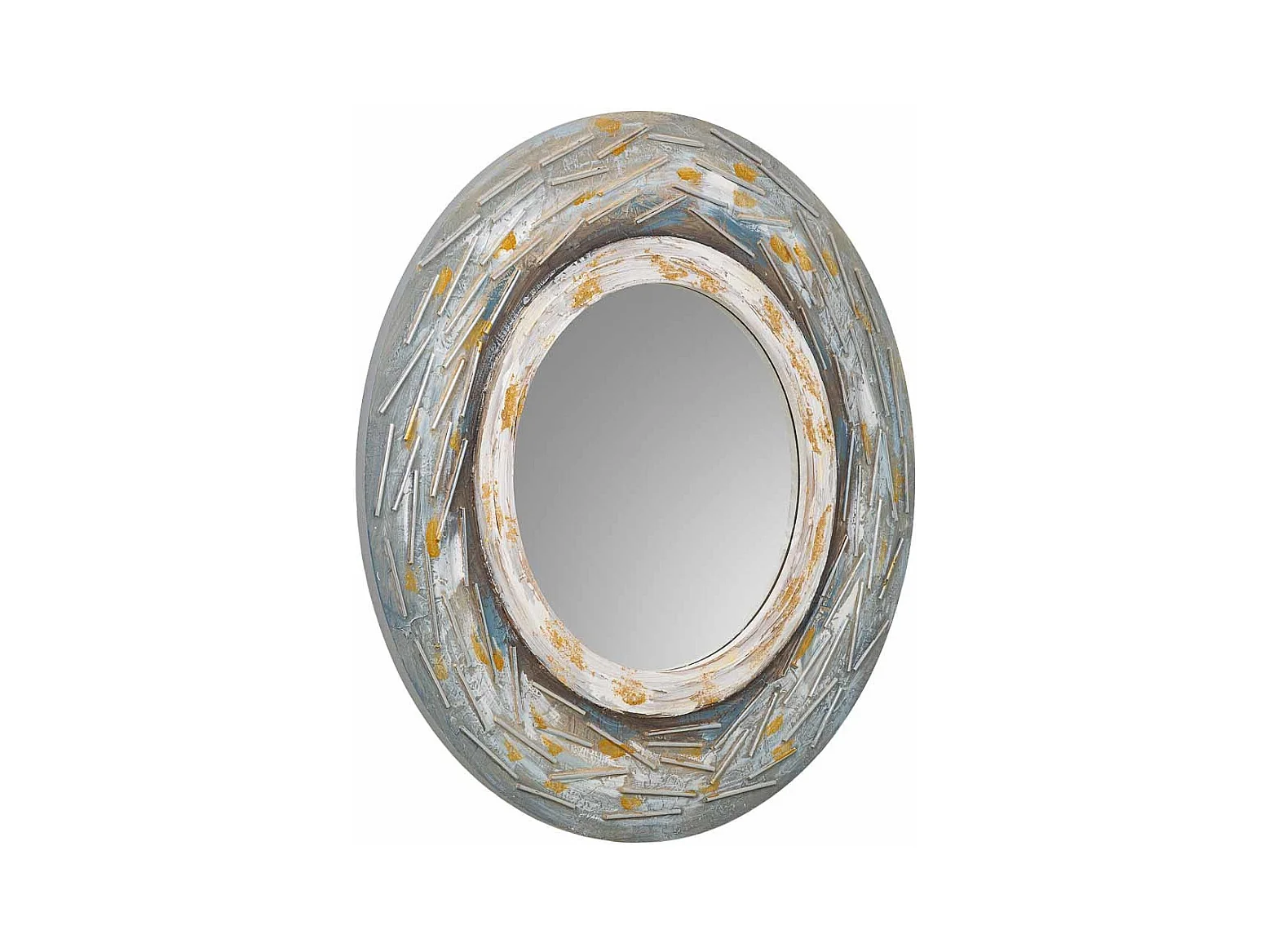 Espejo tallado a mano en madera de mango con acabado bicolor