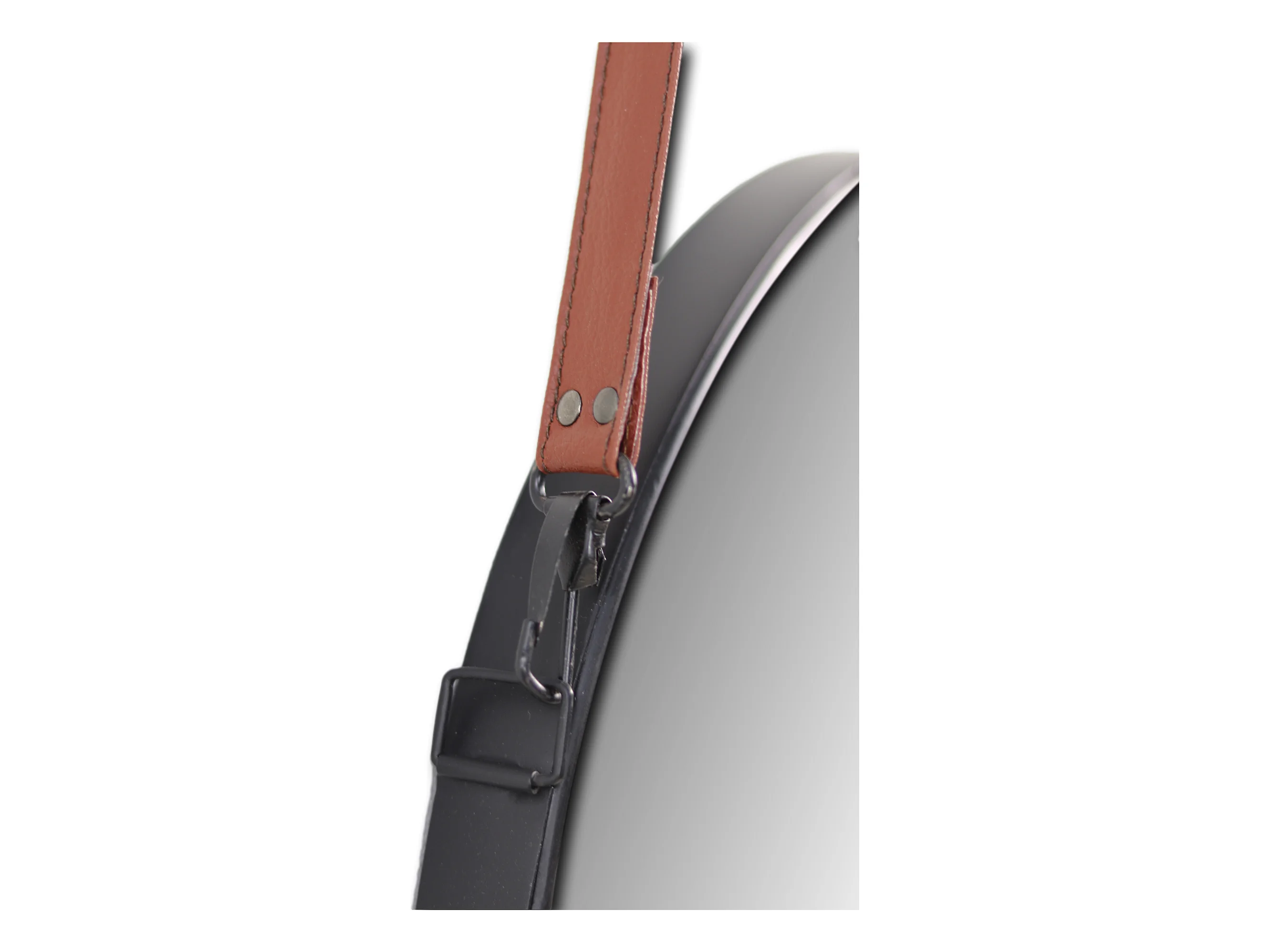 Espejo redondo de metal negro con correa de cuero artificial 49 x 3 x 68
