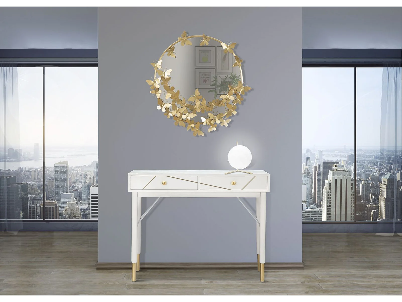 Espejo redondo de pared dorado con mariposas decorativas 74cm Butterfly S