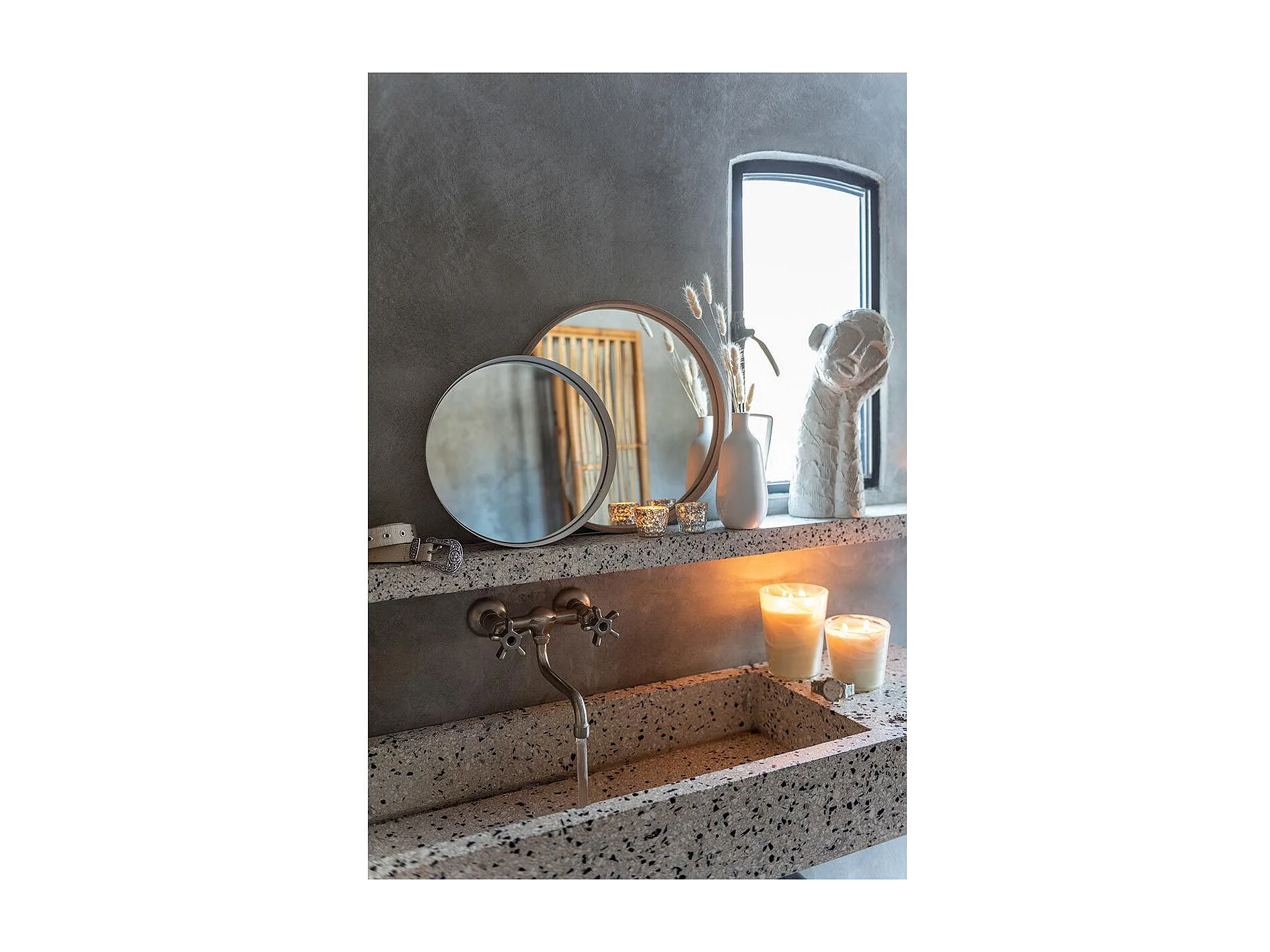 Espejo redondo de piel beige Apolo D 40,5 cm