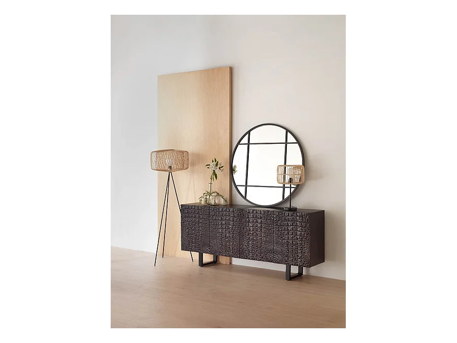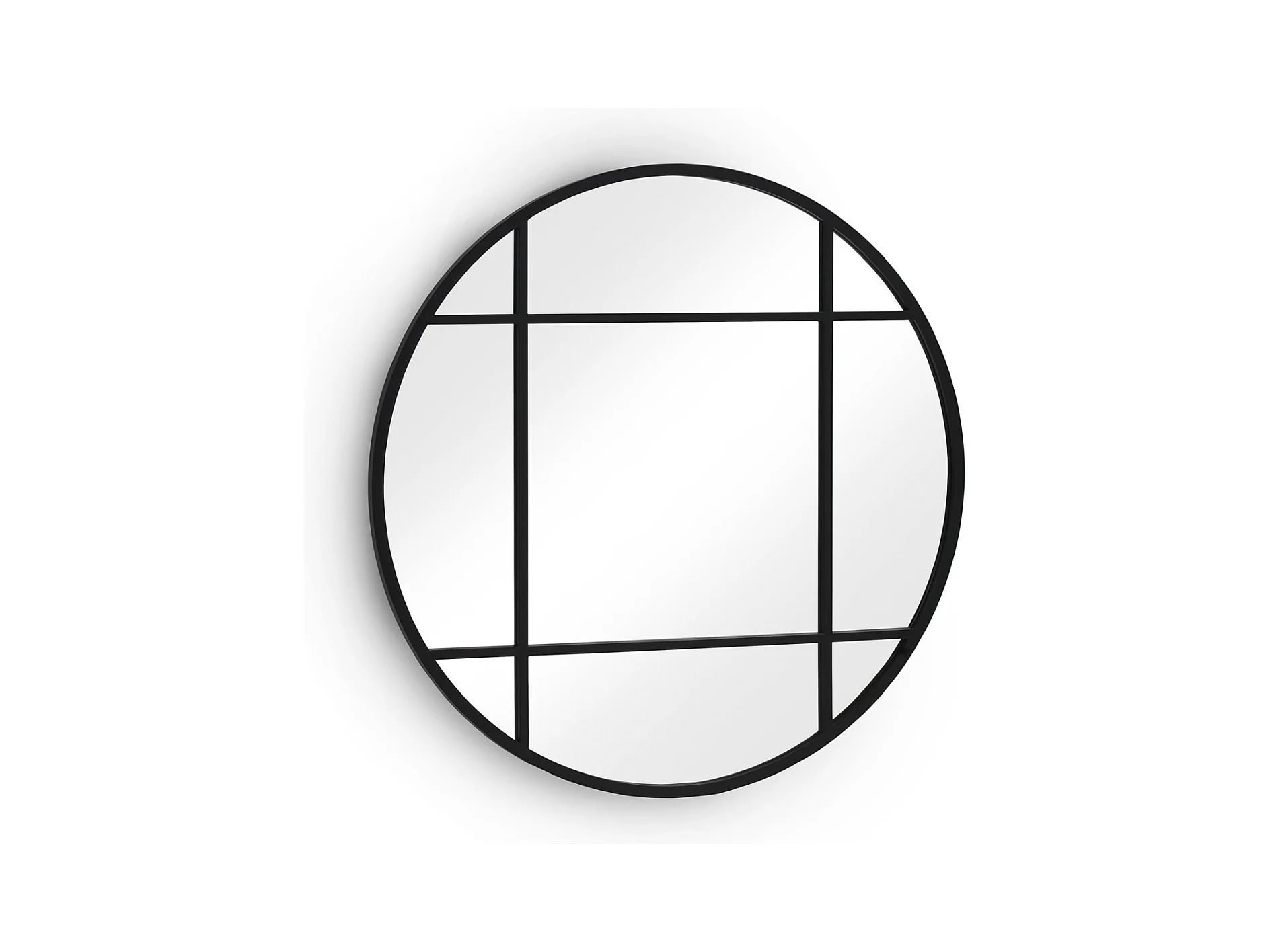 Espejo de pared redondo TRAPANI de metal negro – Ø 60 cm