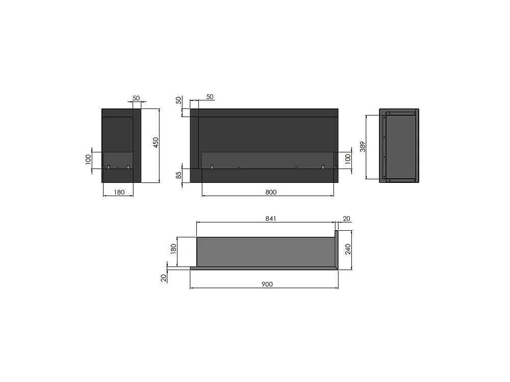 Chimenea de bioetanol empotrada SimpleFire Corner 900 Right con cristal