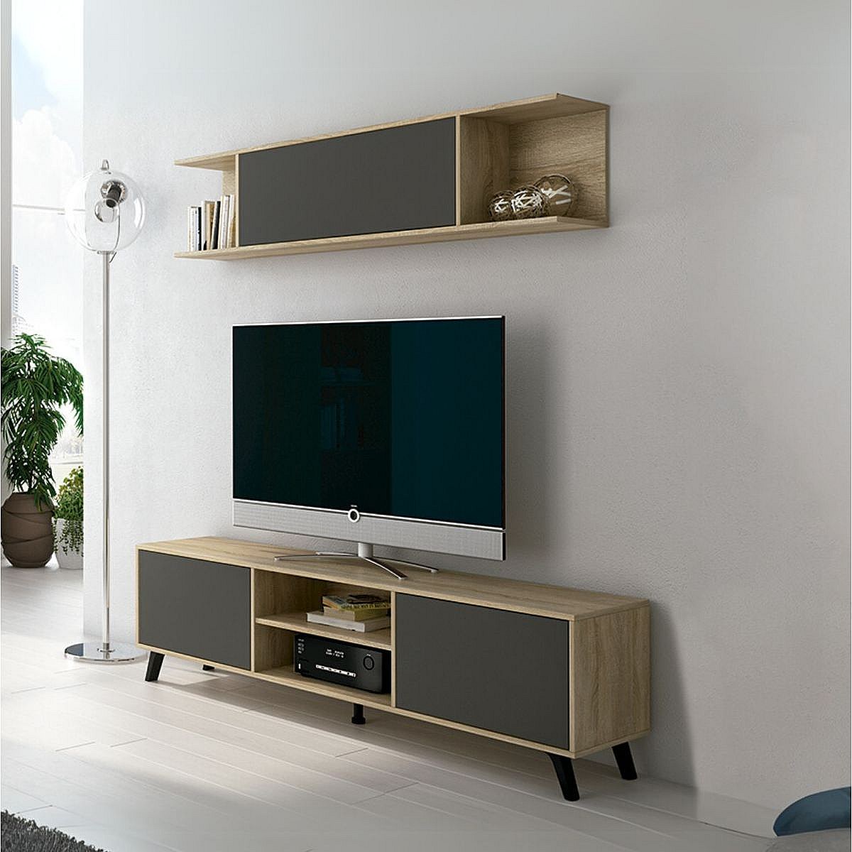 Estante alto Soto 2 compartimentos + armario cambria/grafito 35,2x160x27,8 cm