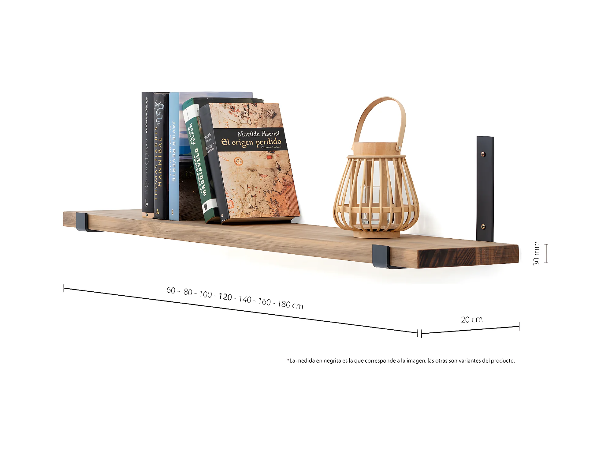 Estante Bristol 120x20cm grosor 30mm en madera maciza de pino acabado vintage estilo industrial Box Furniture