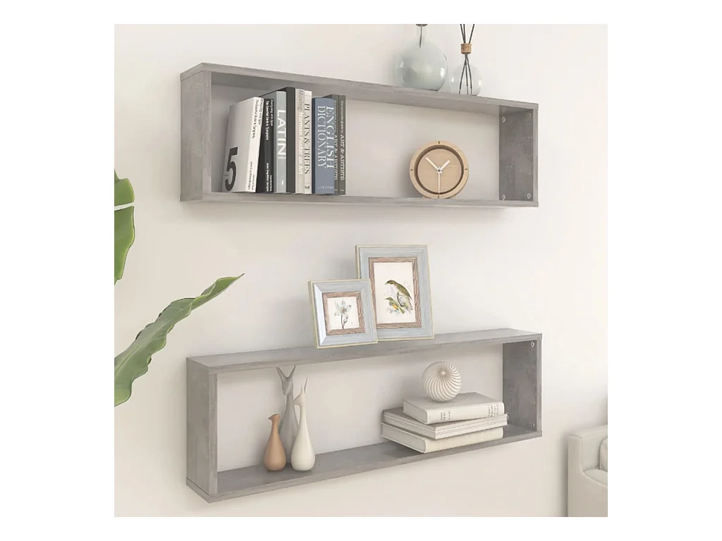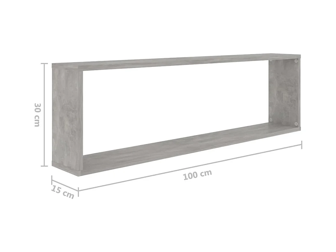 Estante cubo pared 2uds contrachapado gris hormigón 100x15x30cm