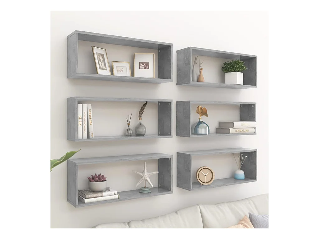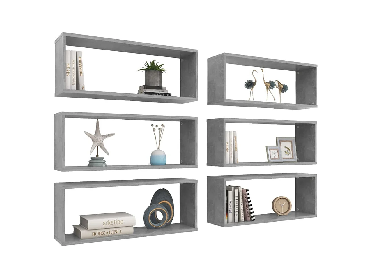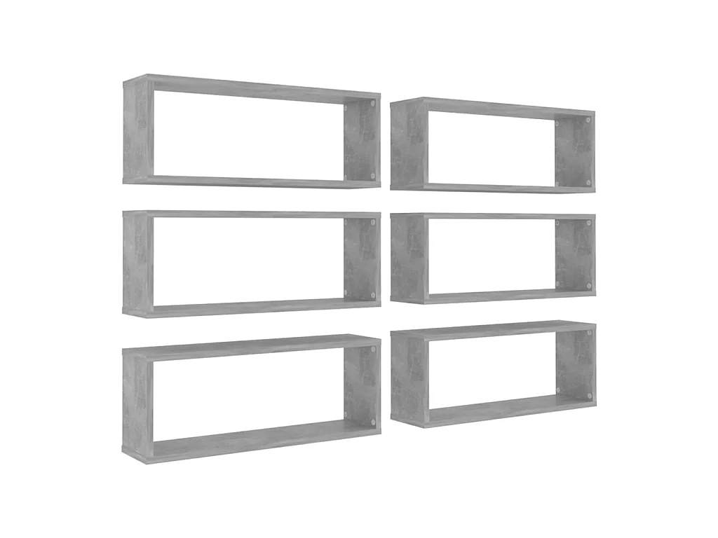 Estante cubo pared 6 uds contrachapado gris hormigón 60x15x23cm ES48493