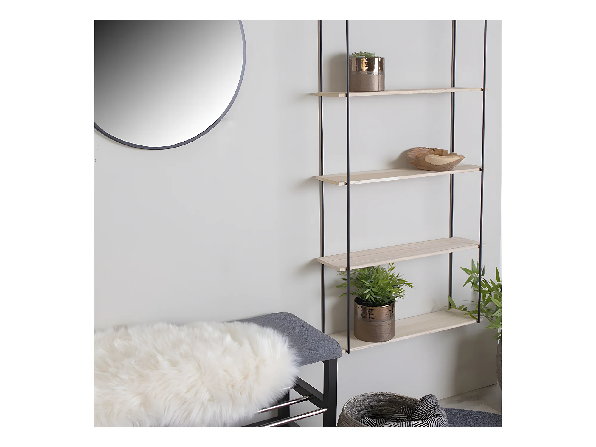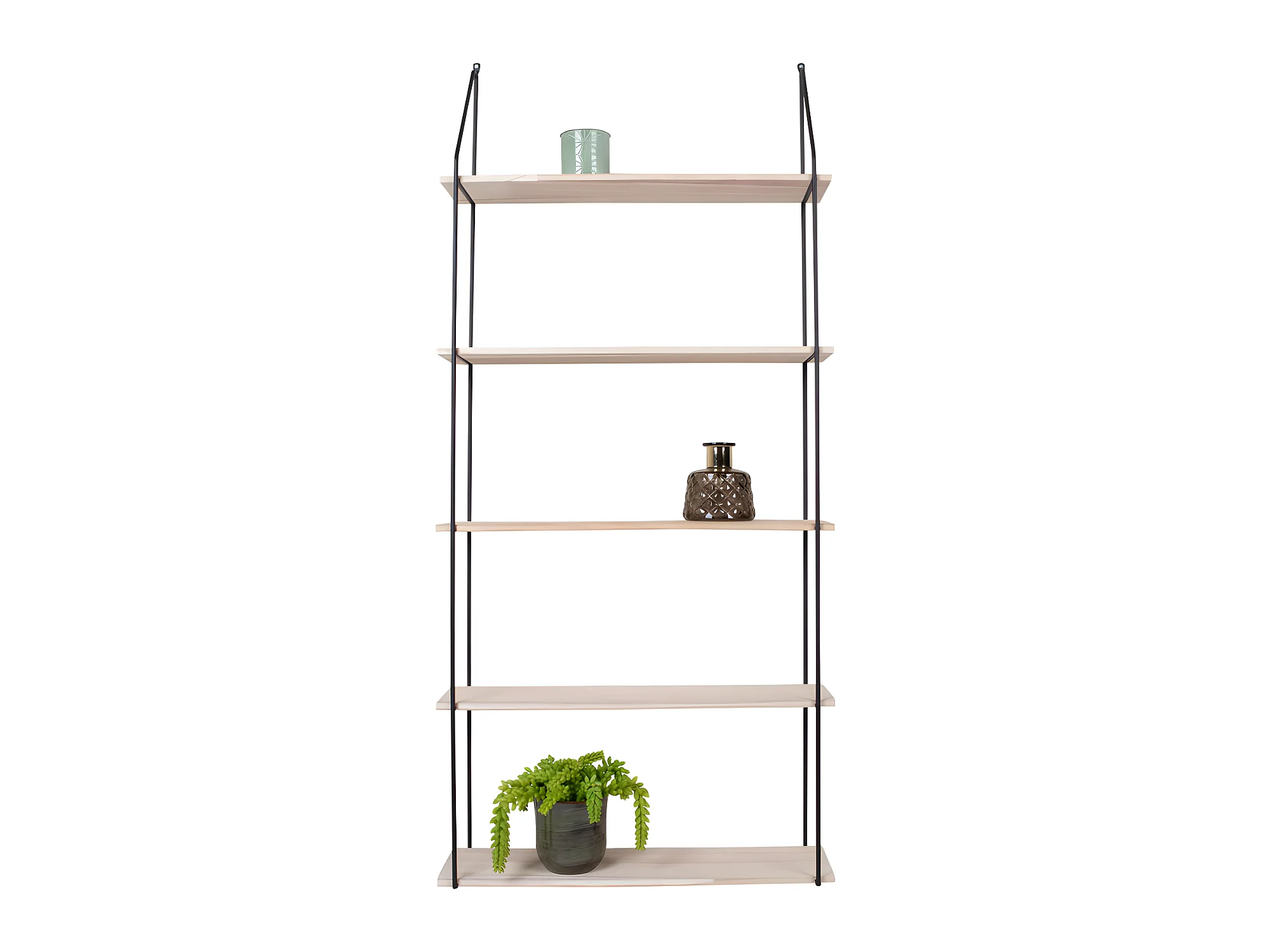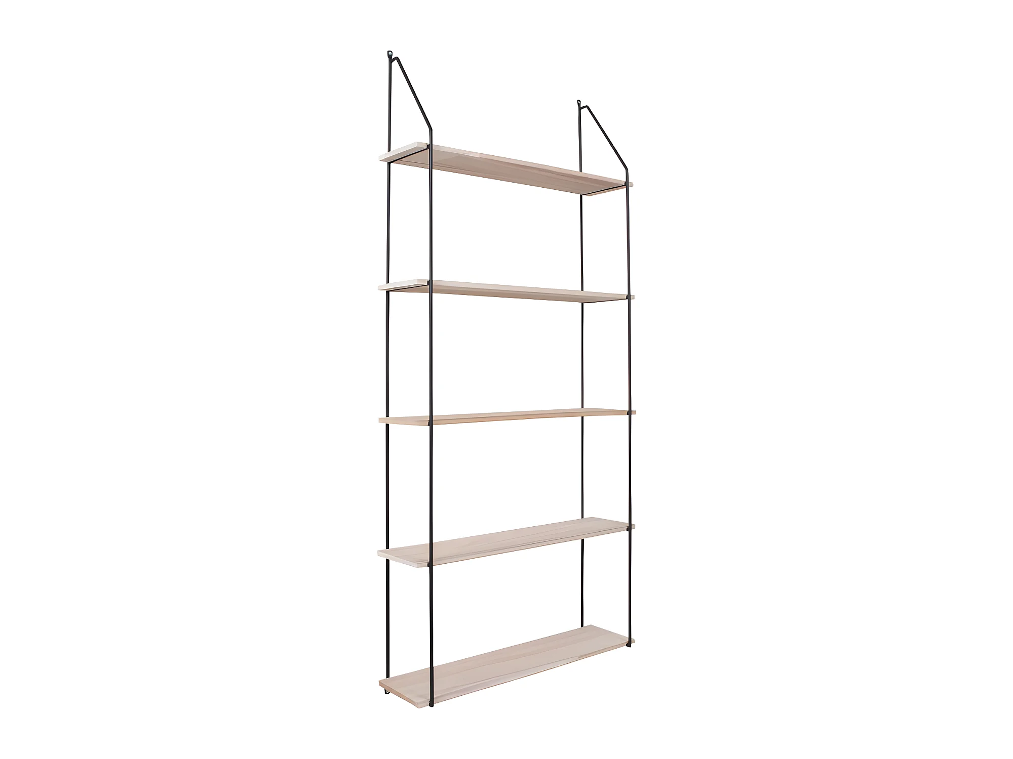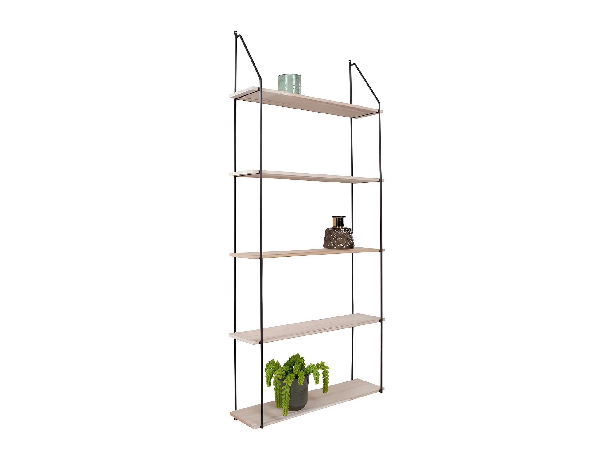 Estante de 5 coronas en madera natural con marco negro 65 x 17 x 145 cm
