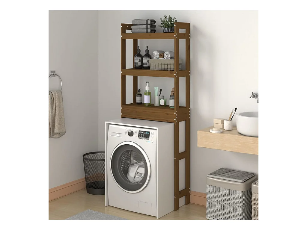 Estante de baño madera maciza de pino marrón miel 63x26x171 cm ES334611