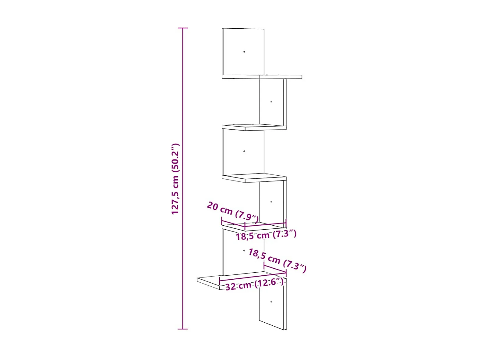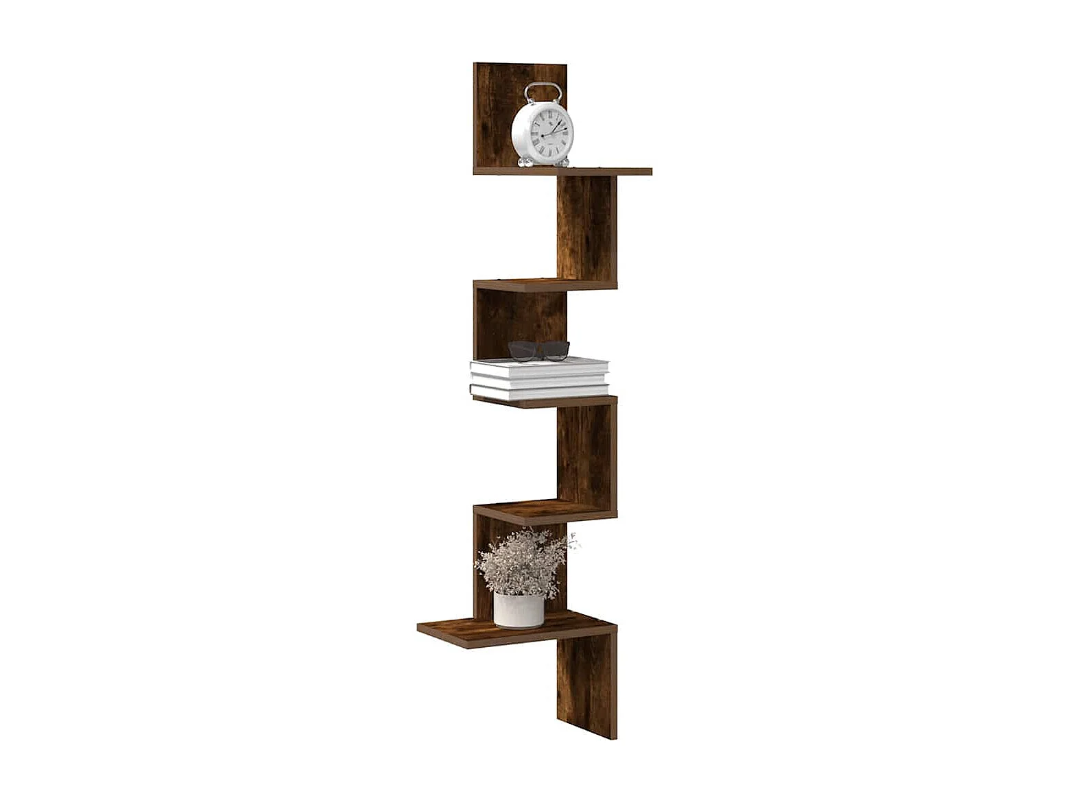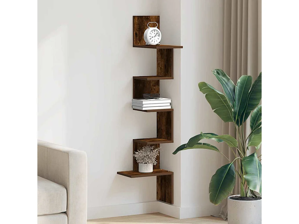 Estante de esquina de pared de roble ahumado de madera de ingeniería