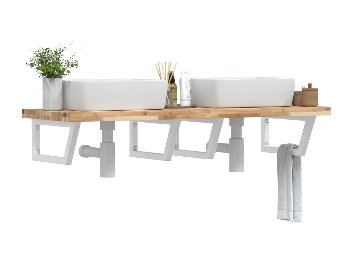 Estante de lavabo de pared acero y madera maciza de acacia