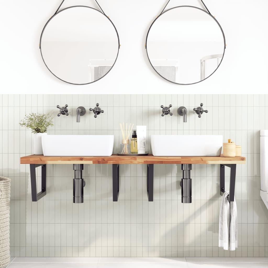Estante de lavabo de pared acero y madera maciza de acacia