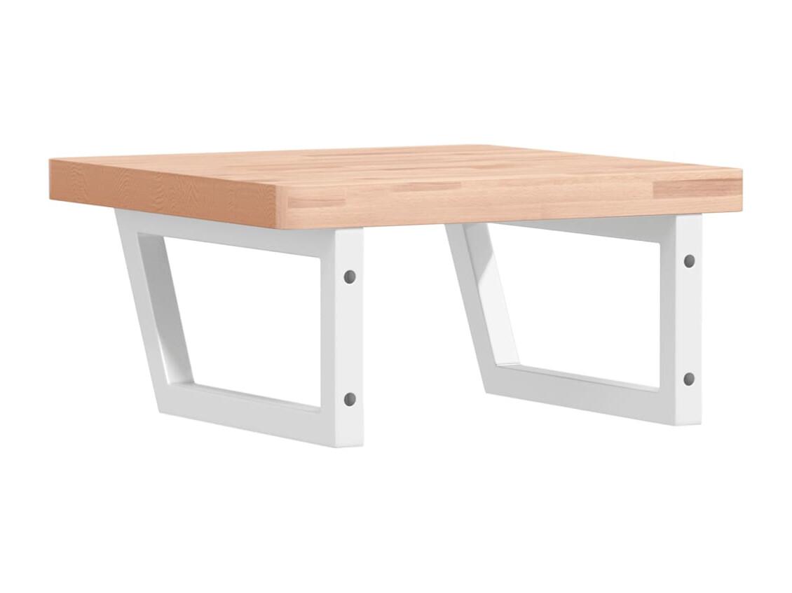 Estante de lavabo de pared de acero y madera maciza de haya