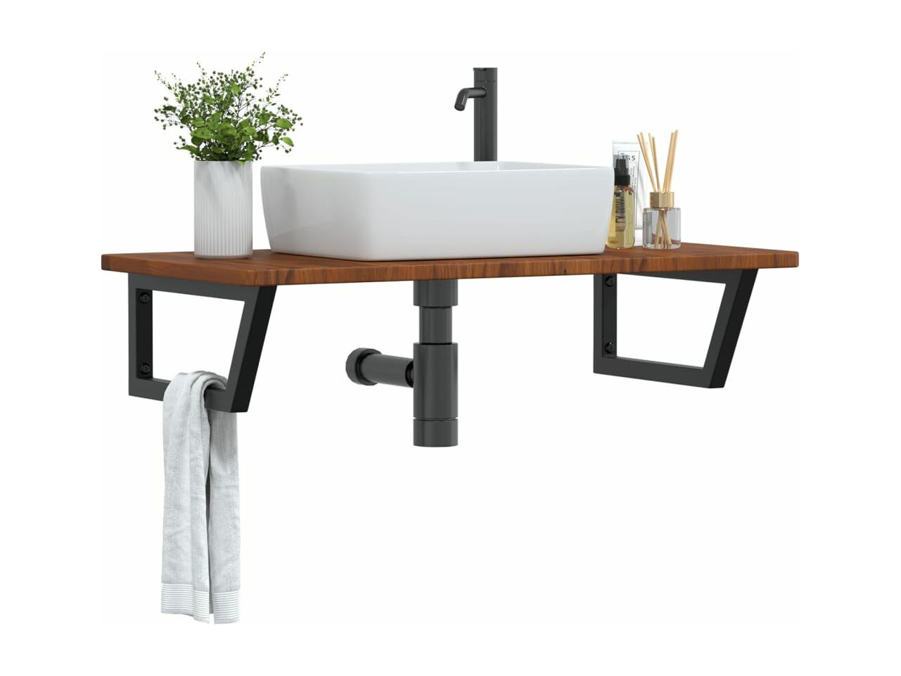 Estante de lavabo de pared acero y madera maciza de acacia