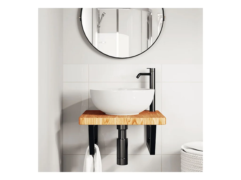 Estante de lavabo de pared de acero y madera maciza de roble ES921455