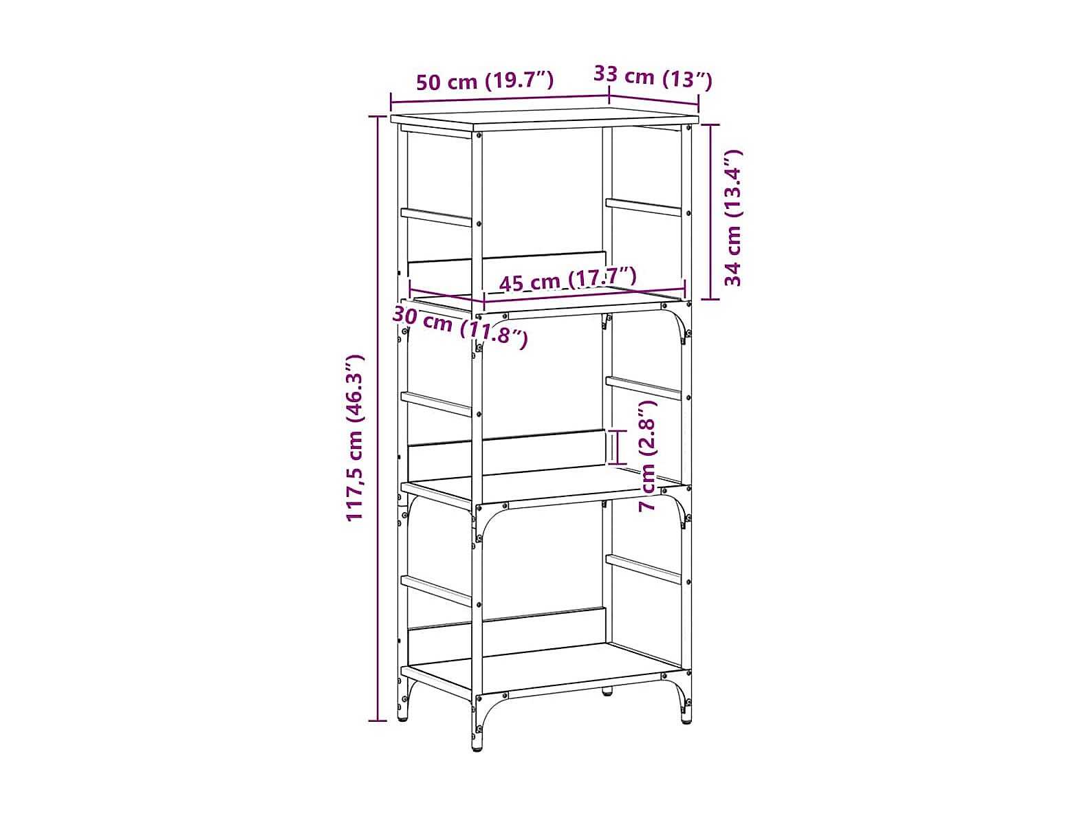 Estante de libros Roble negro 50 x 33 x 117.5 cm