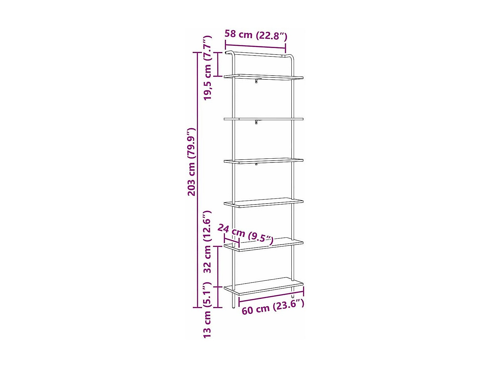 Estante de libros Roble artisan 60 x 24 x 203 cm