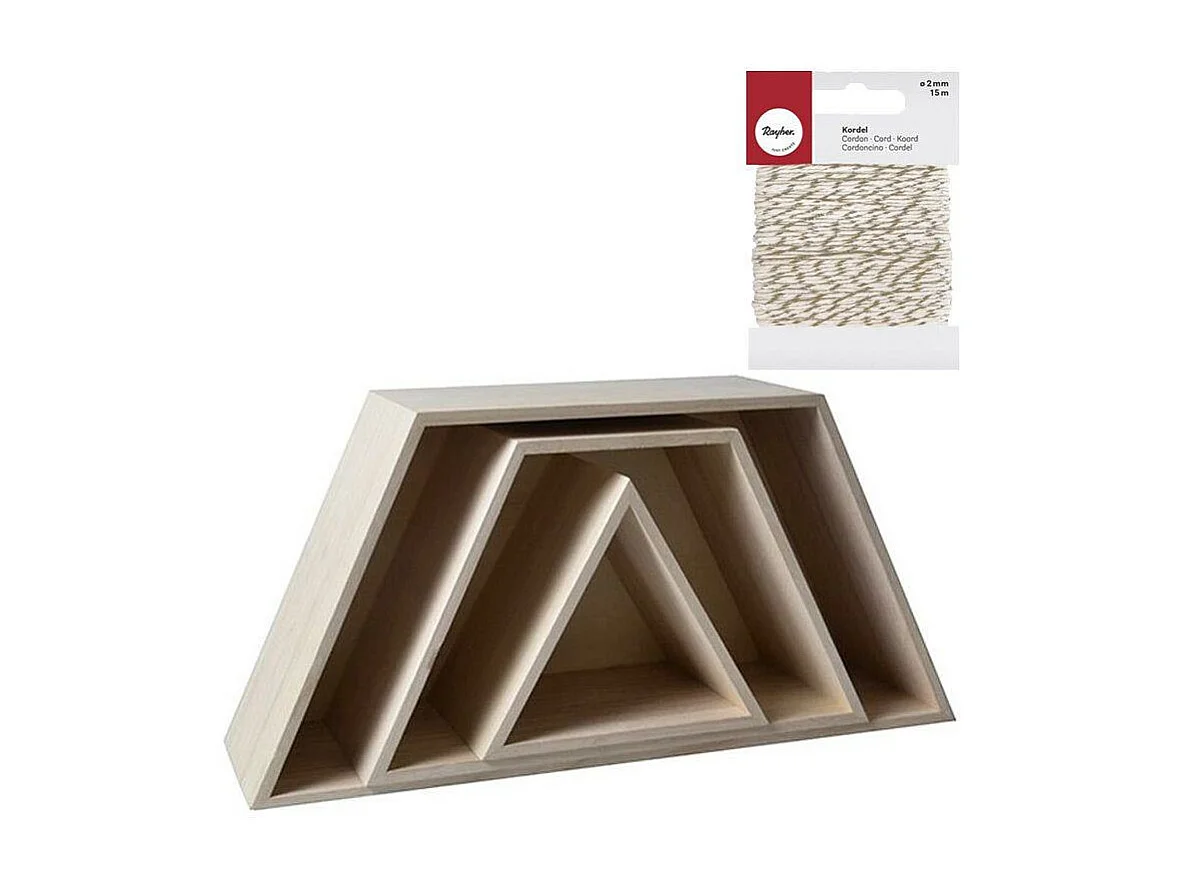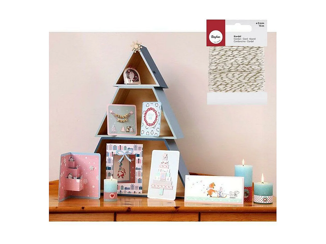 Estante de madera Arbol de Navidad 48 x 14 x 60 cm + cordel dorado & blanco 15 m