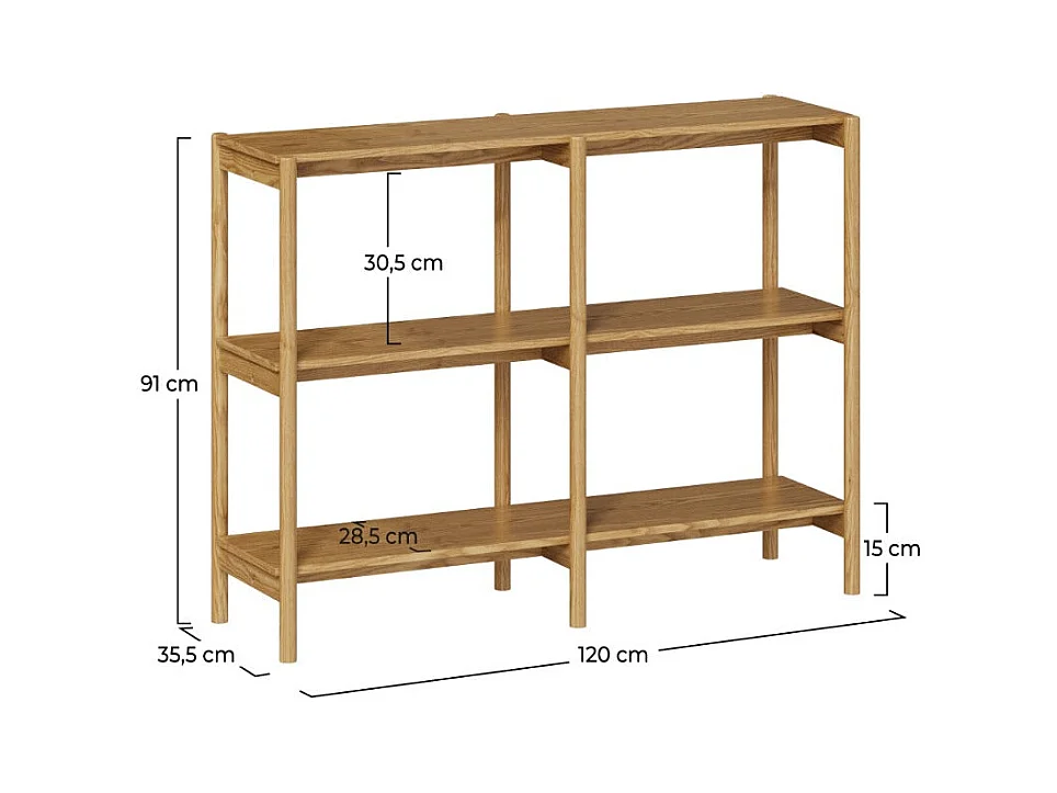 Librería divisora 3 niveles madera roble artisan 70x24x97 cm